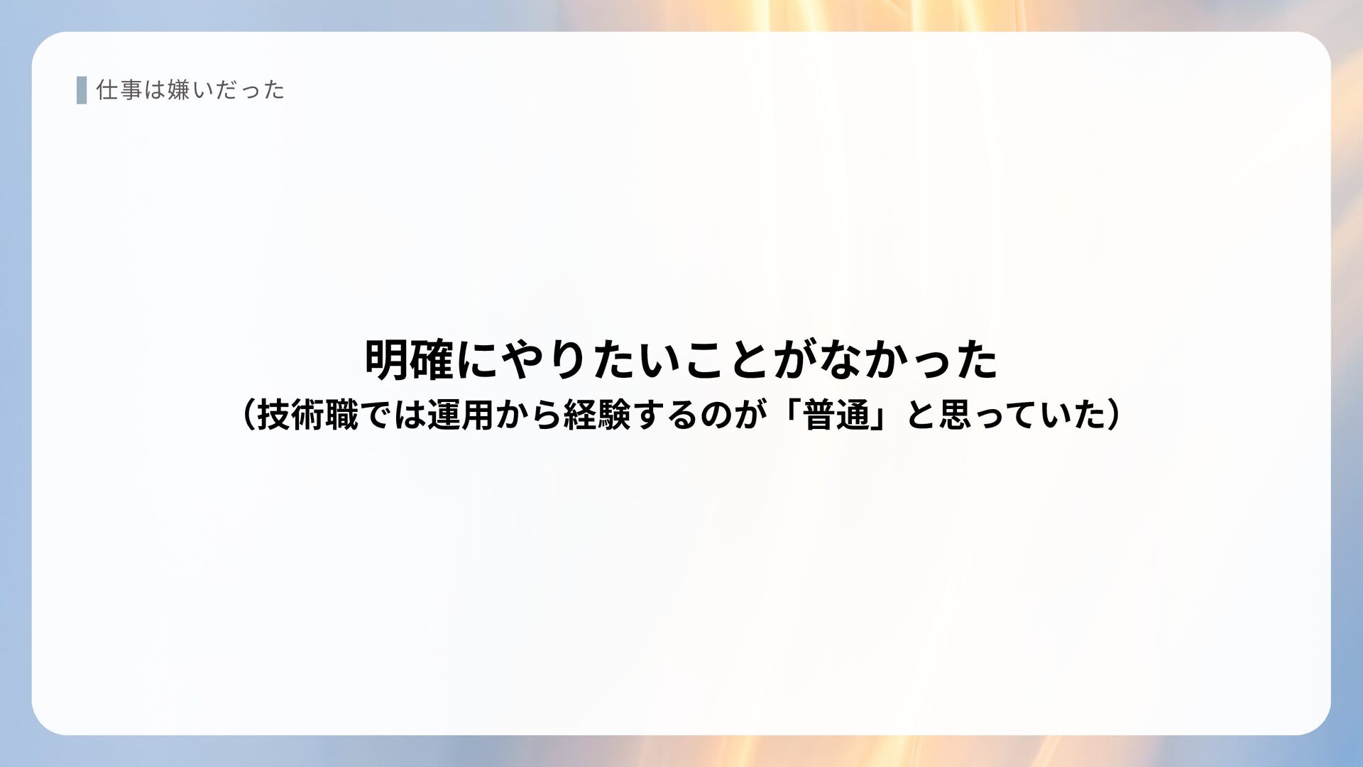 仕事は嫌いだった 明確にやりたいことがなかった (技術職では運用から経験するのが「普通」と思っていた)