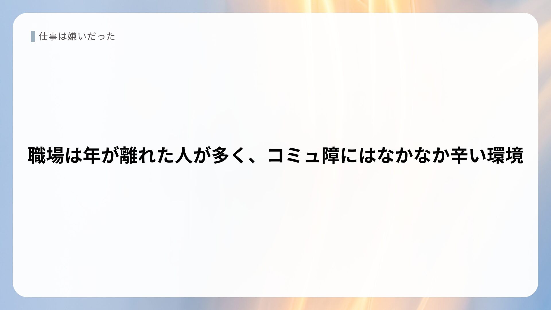 仕事は嫌いだった 職場は年が離れた人が多く、コミュ障にはなかなか辛い環境