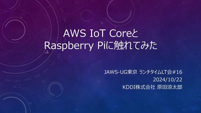 AWS IoT Coreと Raspberry Piに触れてみた JAWS-UG東京 ランチタイムLT会#16 2024/10/22 KDDI株式会社 原⽥涼太郎