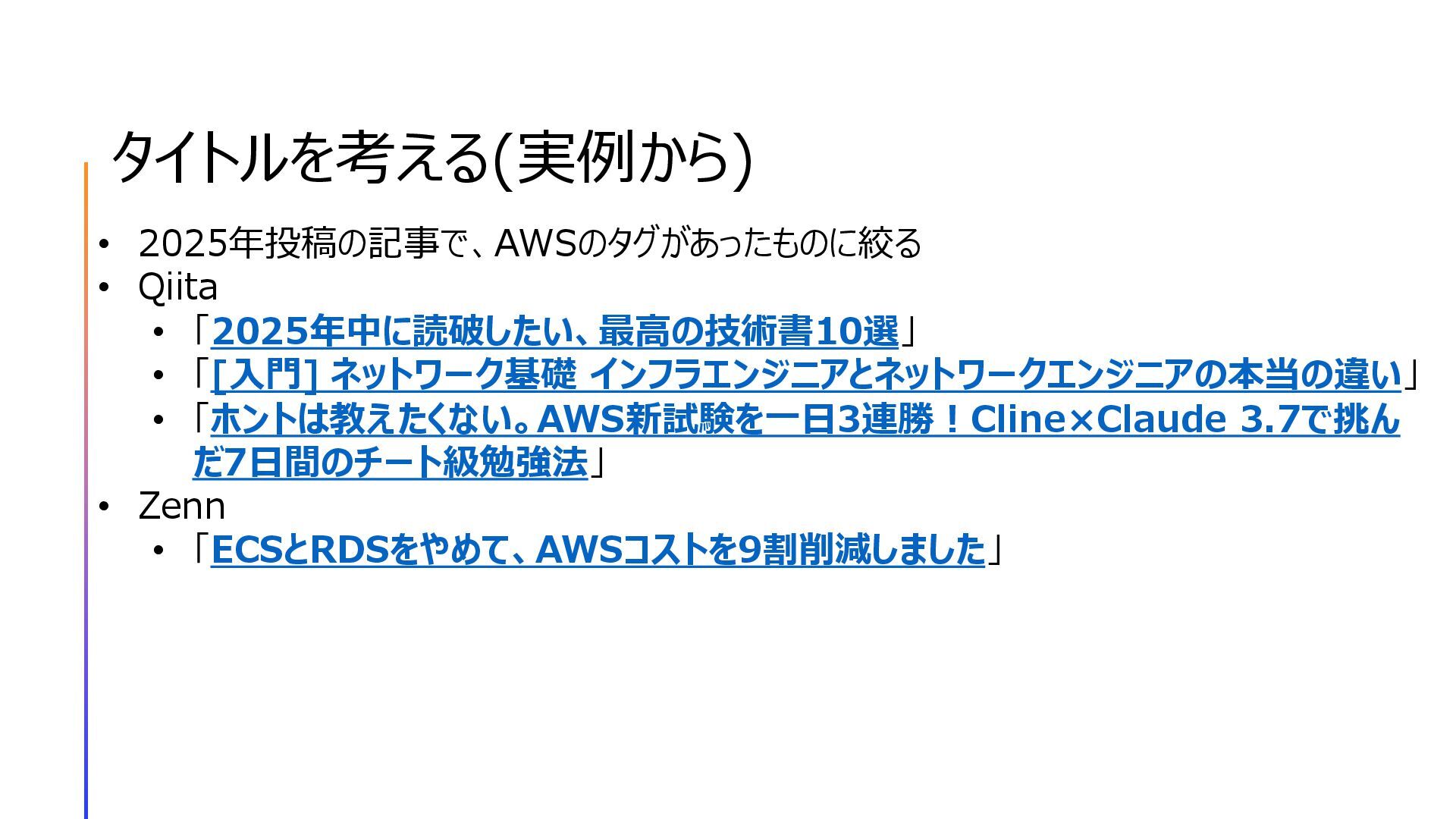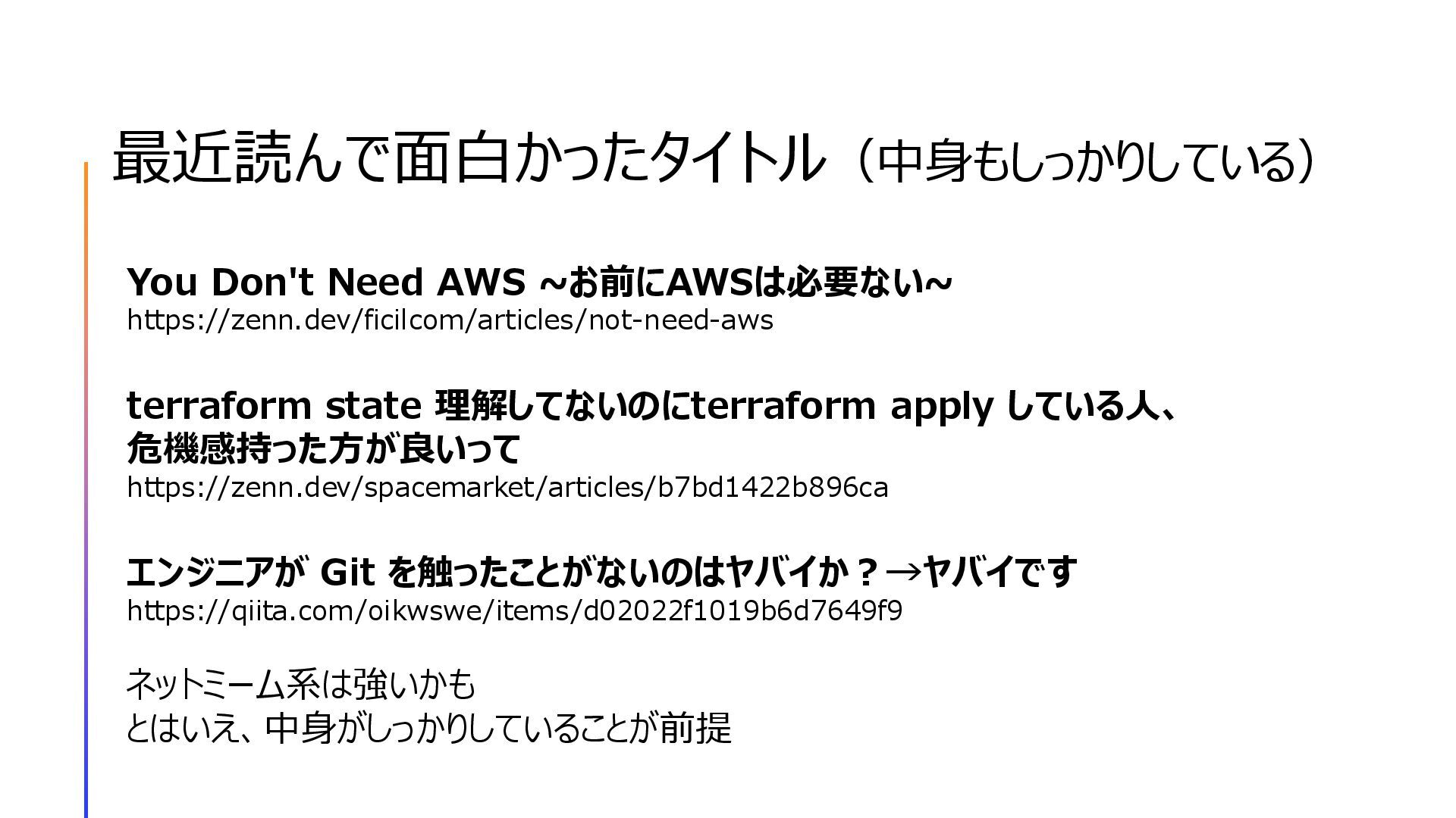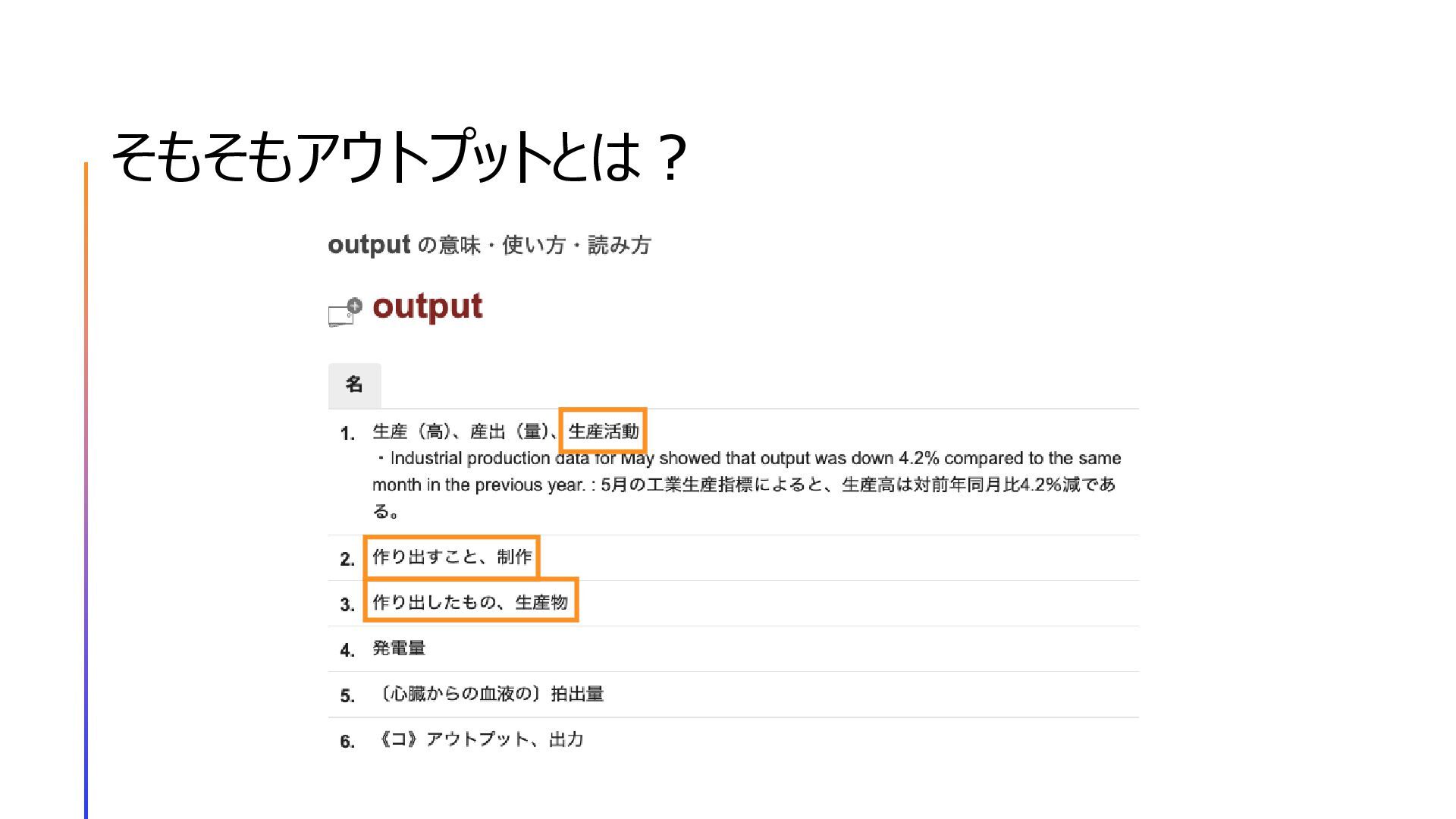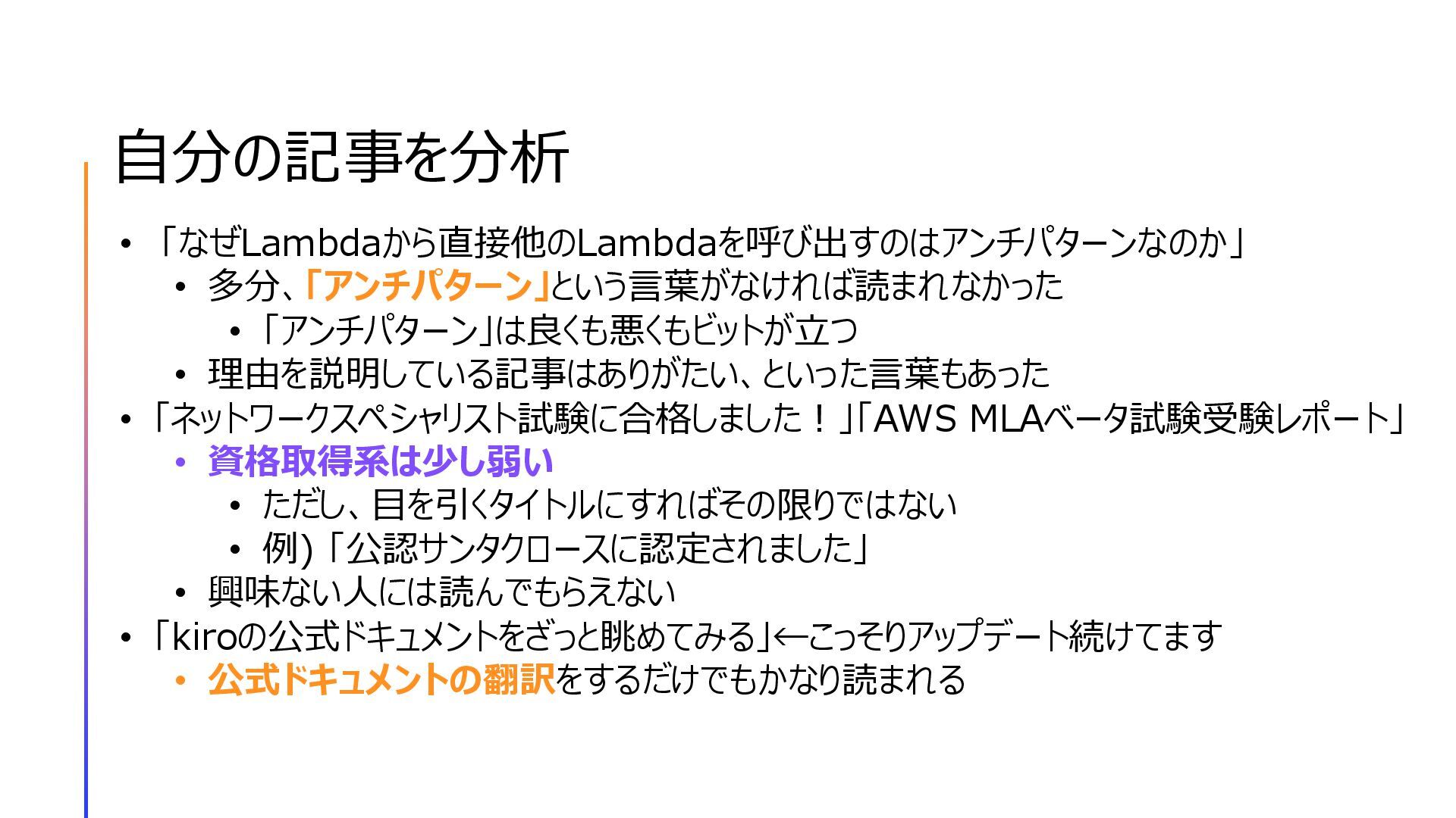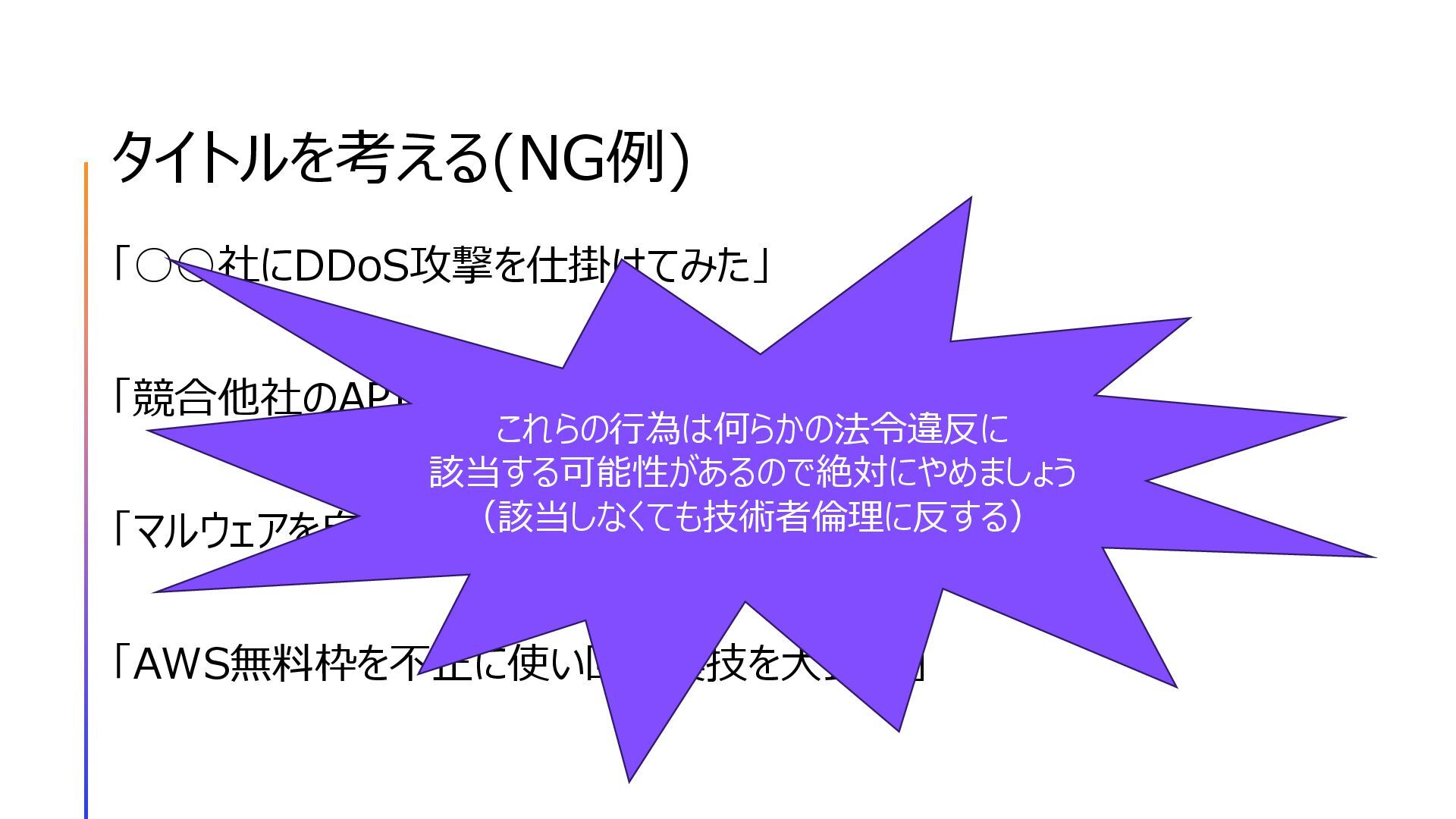 ◦ ◯◯やってみた(新規モノ) △〜◦(内容次第) △〜◦(内容次第) △〜◦(内容次第) ◦ ◯◯やってみた(既存モノ) ◎ ◦ △ ◦ ◯◯やってみた(独自) △ × ◦〜◎ ◎ OSS貢献 △ △〜◦ ×〜△ ◦ 概念解説 △〜◦ △ ◦〜◎ ◦ 失敗談 ×〜△(会社系) ◦(個人) ◦ ◎ ◦ 動画 ×〜△(編集有無による) △ ×〜◎ ◦ 登壇 △〜◦ △〜◦ ◦ ◦ 技術同人誌 △〜◦ △〜◦ △〜◦ ◦ 商業誌 × × ◦〜◎ ◎ あくまで主観的な評価 どんなアウトプットでも 「学び」がある!!