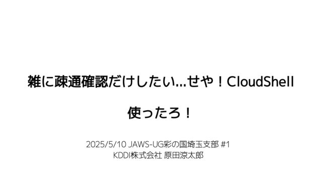 雑に疎通確認だけしたい...せや!CloudShell 使ったろ! 2025/5/10 JAWS-UG彩の国埼玉支部 #1 KDDI株式会社 原田涼太郎
