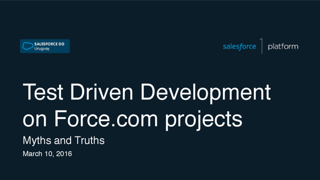Truths Uruguay Salesforce Developer Group March 10, 2016 #UYSDUG Aldo Fernandez Technical Architect @aldoforce #uysdug #tdd #dependencyInjection #apex #testing
