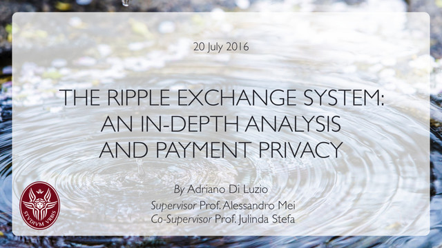 the Ripple Currency Exchange System (waiting for reviews) HotNets 2016 Gatekeepers of a Distributed Financial World: Anonymity and Trustworthiness of Ripple Validators (to be submitted) IEEE INFOCOM 2017 16