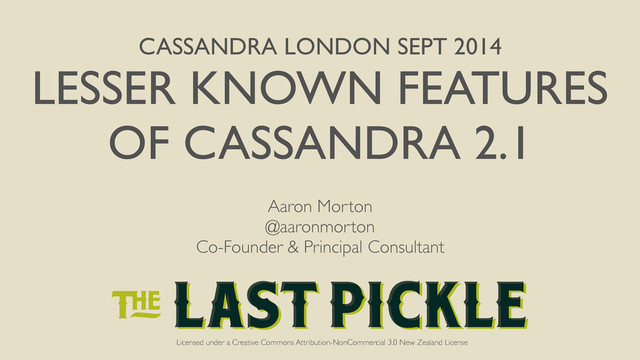 CASSANDRA LONDON SEPT 2014 LESSER KNOWN FEATURES OF CASSANDRA 2.1 Licensed under a Creative Commons Attribution-NonCommercial 3.0 New Zealand License Aaron Morton @aaronmorton Co-Founder & Principal Consultant