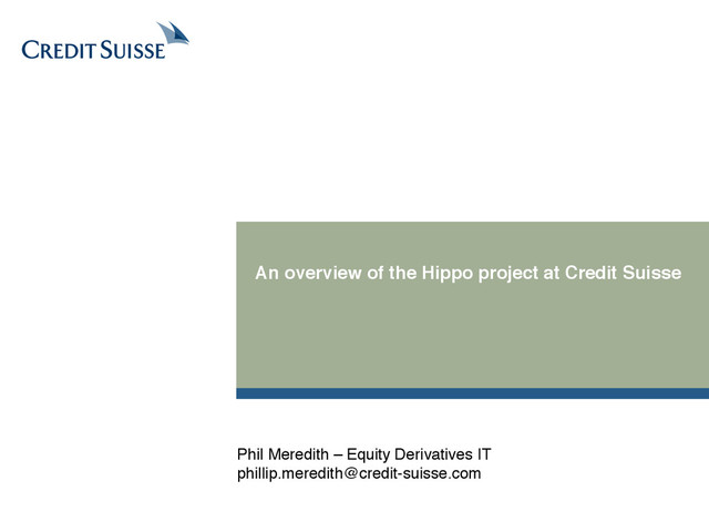 These materials do not constitute an offer or a solicitation of an offer to buy or sell investment products or securities, nor do they constitute a prospectus for any securities, nor do they otherwise constitute an agreement to provide investment services. These materials are provided for information purposes only and do not contain all of the information that is material to an investor. By reading these materials, you agree as follows:! ! These materials and any associated oral presentation or discussion (together the “materials”) are strictly confidential and have been provided to you by Credit Suisse Securities Europe Limited (“CSSEL”) and/or its affiliates (together, “Credit Suisse”, “we” or “us”) and may not be used or relied upon unless expressly agreed in writing with us. These materials and the information contained herein are intended solely for your information and may not be disclosed or distributed to any other person, or otherwise replicated in any form without the prior written consent of Credit Suisse.! ! These materials are not for distribution to Retail Clients, as defined by the FCA Rules. Any investment or services to which these materials may relate will not be made available to Retail Clients.! ! CREDIT SUISSE IS ACTING SOLELY AS AN ARM’S LENGTH CONTRACTUAL COUNTERPARTY AND NOT AS A FINANCIAL ADVISER (OR IN ANY OTHER ADVISORY CAPACITY INCLUDING TAX, LEGAL, ACCOUNTING OR OTHERWISE) OR IN A FIDUCIARY CAPACITY. ANY INFORMATION PROVIDED DOES NOT CONSTITUTE ADVICE OR A RECOMMENDATION TO ENTER INTO OR CONCLUDE ANY TRANSACTION. BEFORE ENTERING INTO ANY TRANSACTION WITH US, YOU SHOULD ENSURE THAT YOU FULLY UNDERSTAND THE POTENTIAL RISKS AND REWARDS AND INDEPENDENTLY DETERMINE THAT IT IS APPROPRIATE FOR YOU GIVEN YOUR OBJECTIVES, EXPERIENCE, FINANCIAL AND OPERATIONAL RESOURCES, AND OTHER RELEVANT CIRCUMSTANCES. YOU SHOULD CONSULT WITH SUCH ADVISERS (INCLUDING, WITHOUT LIMITATION, TAX ADVISERS, LEGAL ADVISERS AND ACCOUNTANTS) AS YOU DEEM NECESSARY. ! ! This material has been prepared by us based on assumptions and parameters determined by us in good faith. The assumptions and parameters used are not the only ones that might reasonably have been selected and therefore no guarantee is given as to the accuracy, completeness or reasonableness of any such quotations, disclosure or analyses. A variety of other or additional assumptions or parameters, or other market factors and other considerations, could result in different contemporaneous good faith analyses or assessment of the transaction described above. ! ! Past performance should not be taken as an indication or guarantee of future performance, and no representation or warranty, express or implied, is made regarding future performance. We assume no responsibility for independent verification of such information and have relied on such information being complete and accurate in all material respects. Any commentary in these materials constitutes our preliminary judgment at, and is based solely on the information received by us before, the date hereof and is subject to change without notice. ! ! We make no representation as to the completeness or accuracy of the information. We do not accept any liability for any direct, indirect or consequential loss or damage arising from reliance on this information. ! ! The price and value of investments mentioned and any income that might accrue may fluctuate and may fall or rise. If an investment is denominated in a currency other than your base currency, changes in the rate of exchange may have an adverse effect on value, price or income.!