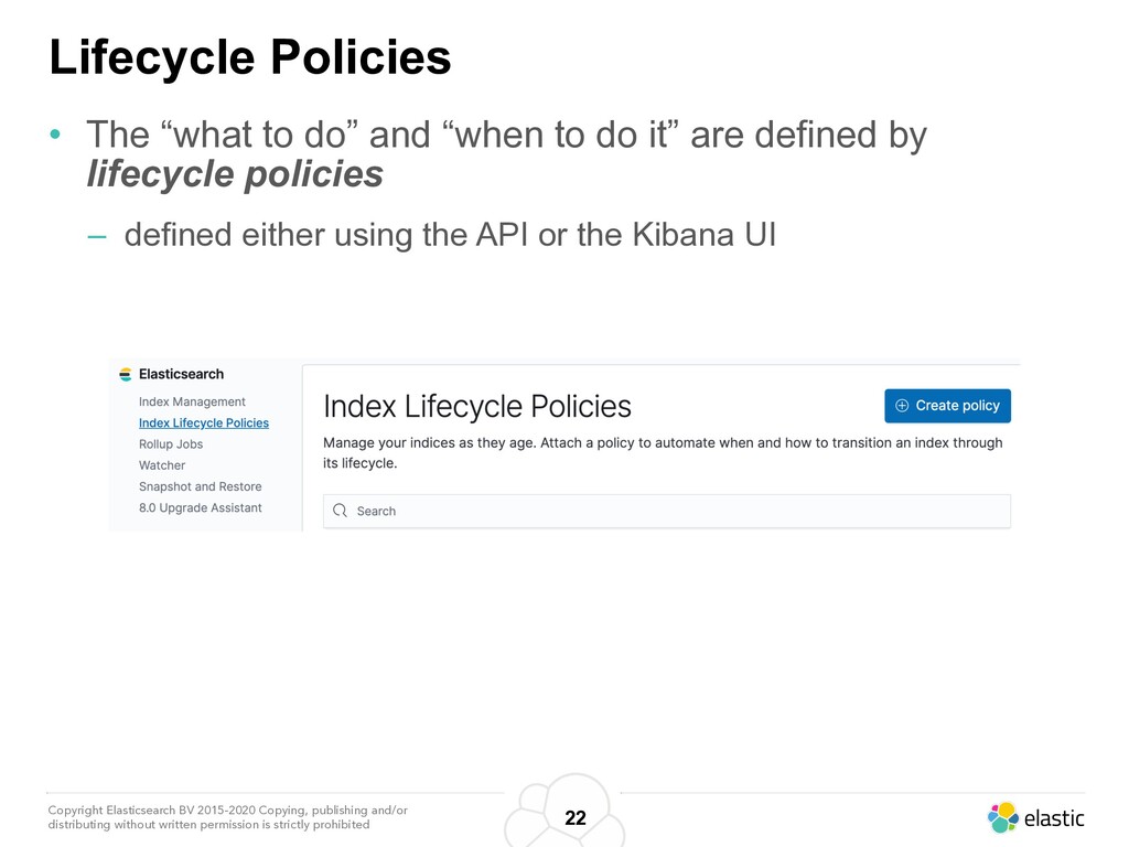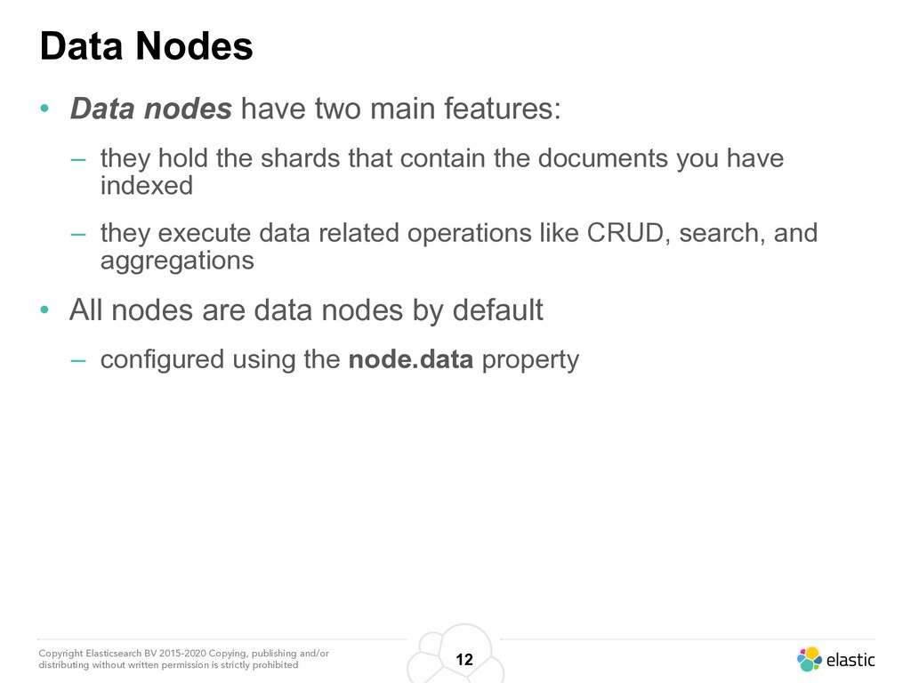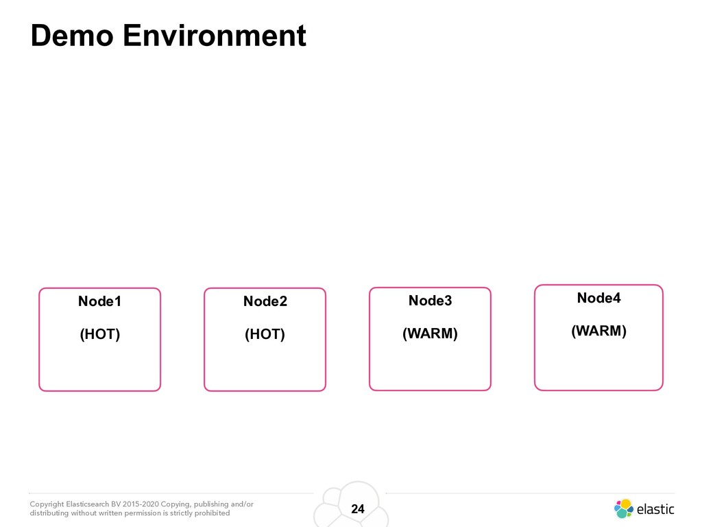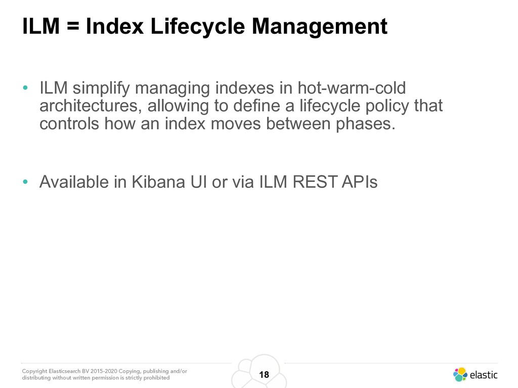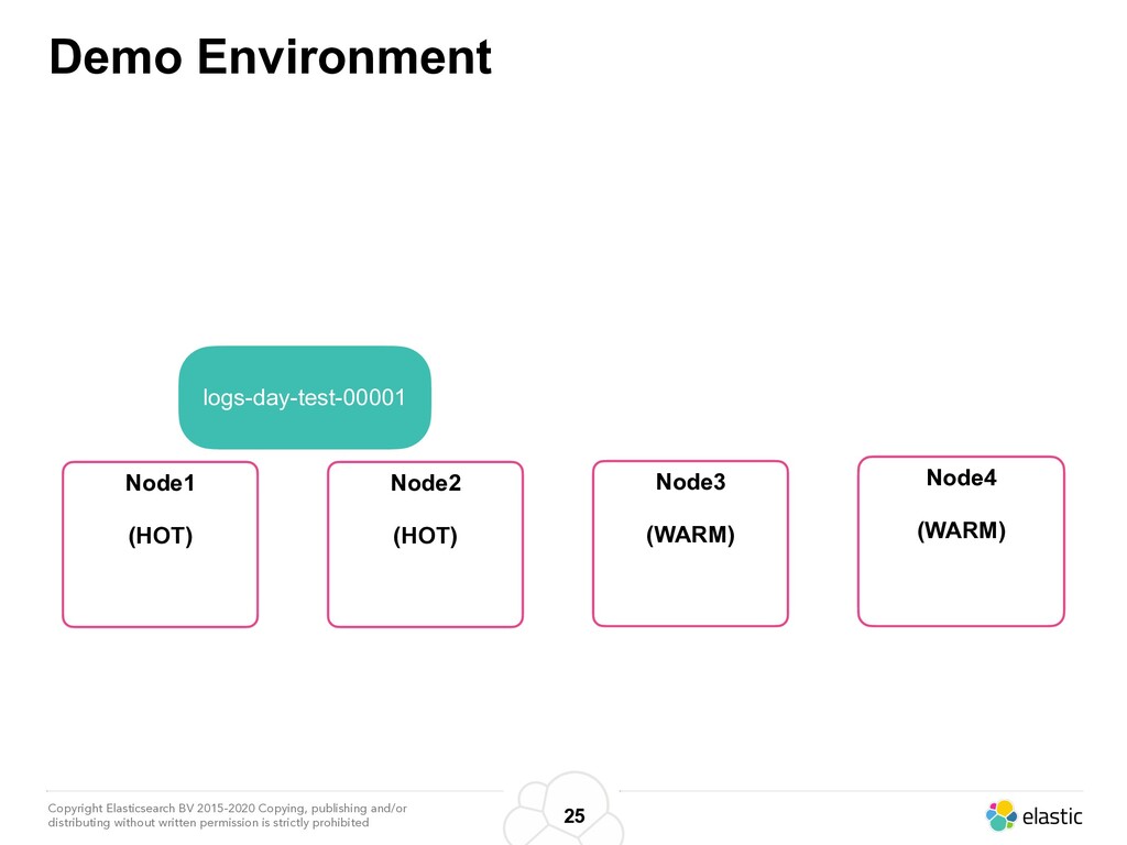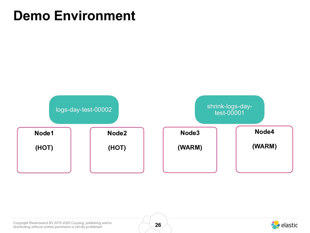 permission is strictly prohibited Hot Nodes • Use hot nodes for the indexing ‒ indexing is a CPU and IO intensive operation, so hot nodes should be powerful servers ‒ faster storage than the warm nodes 14 my_cluster { "volume": 46965, "high": 31.56, "stock_symbol": "ALL", "low": 30.68, "close": 30.91, "trade_date": "2010-01-15T07:00:00.000Z", { "volume": 46965, "high": 31.56, "stock_symbol": "ALL", "low": 30.68, "close": 30.91, "trade_date": "2010-01-15T07:00:00.000Z", { "volume": 46965, "high": 31.56, "stock_symbol": "ALL", "low": 30.68, "close": 30.91, "trade_date": "2010-01-15T07:00:00.000Z", { "volume": 46965, "high": 31.56, "stock_symbol": "ALL", "low": 30.68, "close": 30.91, "trade_date": "2010-01-15T07:00:00.000Z", { "volume": 46965, "high": 31.56, "stock_symbol": "ALL", "low": 30.68, "close": 30.91, "trade_date": "2010-01-15T07:00:00.000Z", { "volume": 46965, "high": 31.56, "stock_symbol": "ALL", "low": 30.68, "close": 30.91, "trade_date": "2010-01-15T07:00:00.000Z", { "username" : "kimchy", "tweet" : "Search is something that any application should have", "tweet_time" : "2010-02-17T23:09:00Z" } hot_node1 hot_node2 hot_node3