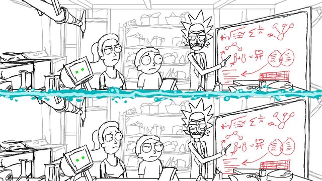 A storyboard I made, based on a script excerpt from and episode of Rick and Morty.