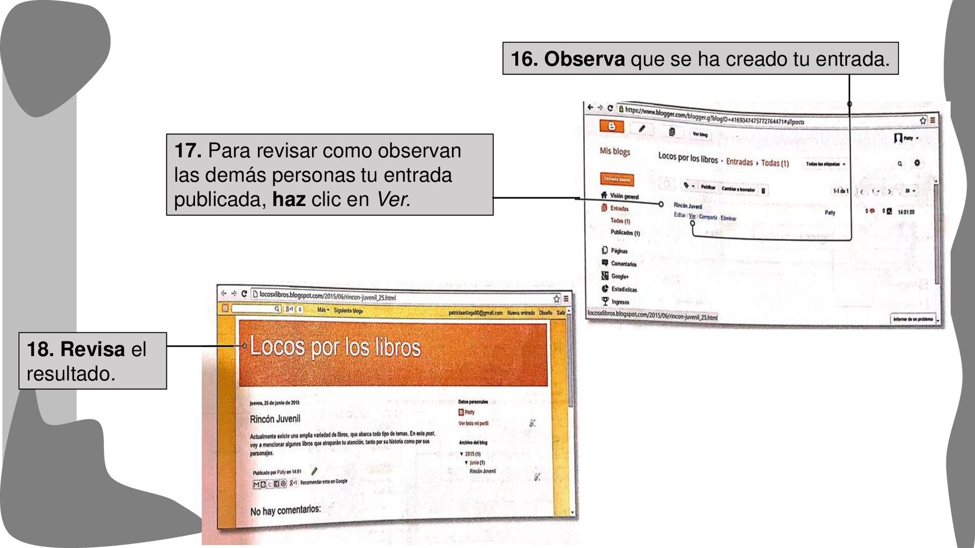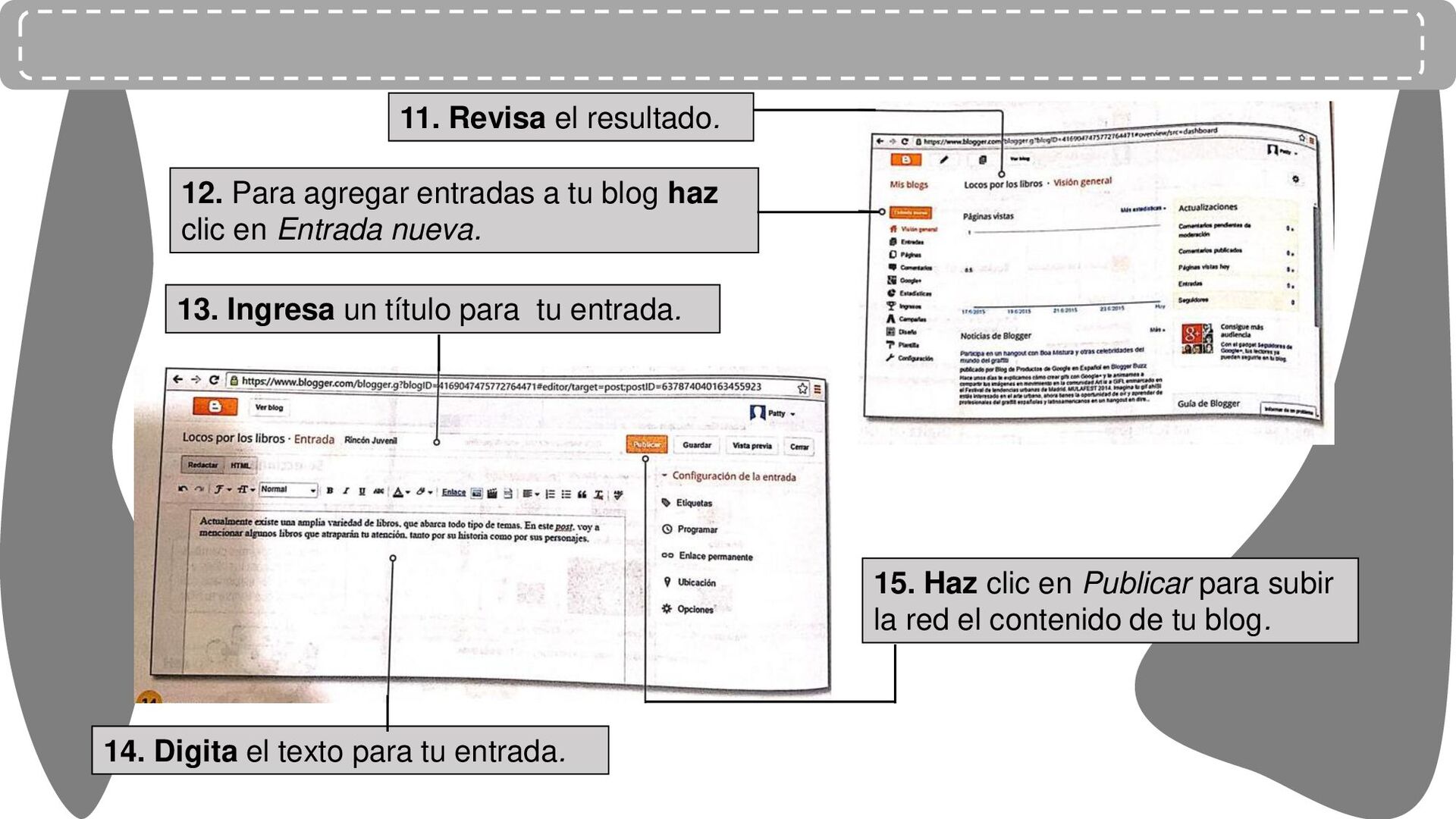 blog haz clic en Entrada nueva. 13. Ingresa un título para tu entrada. 14. Digita el texto para tu entrada. 15. Haz clic en Publicar para subir la red el contenido de tu blog.