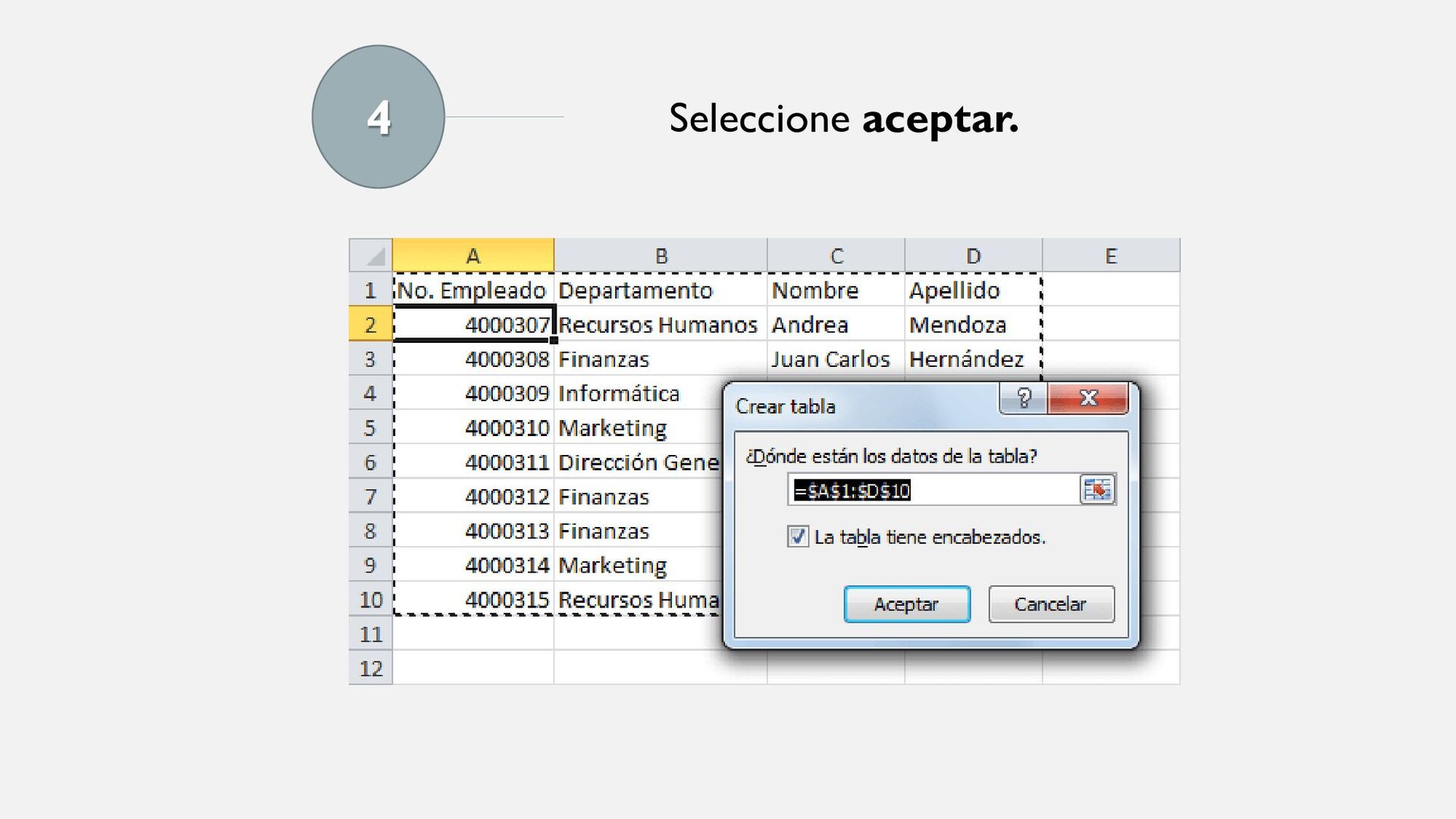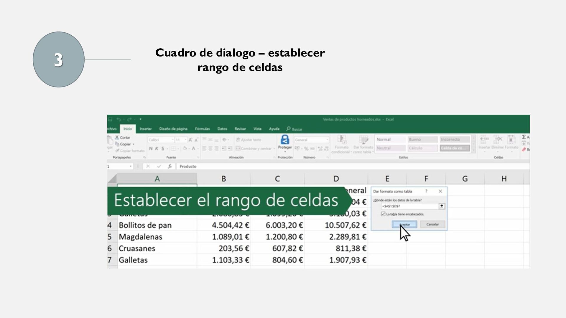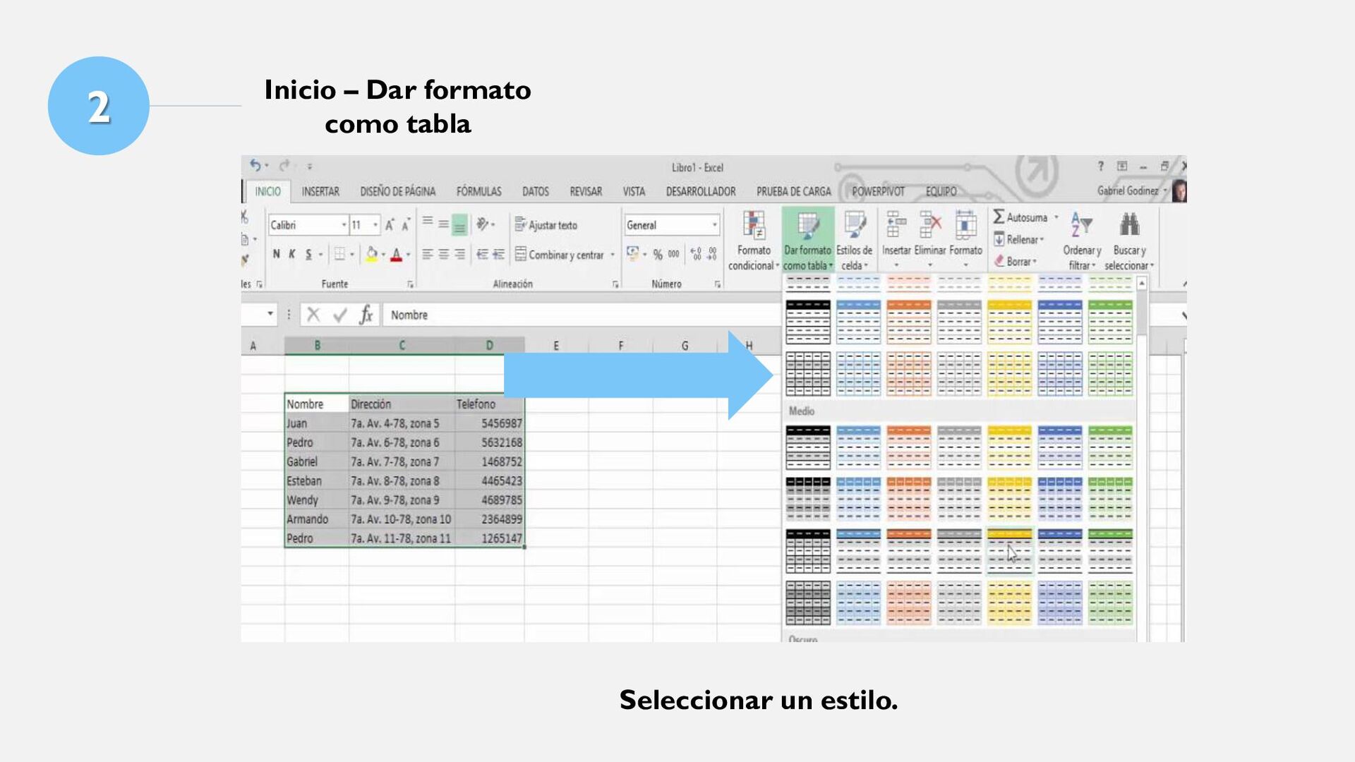 2 Inicio – Dar formato como tabla Seleccionar un estilo.