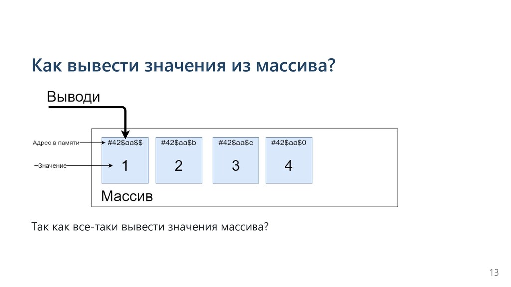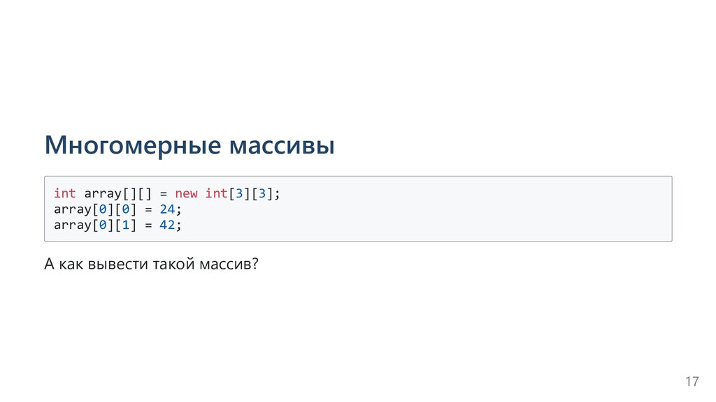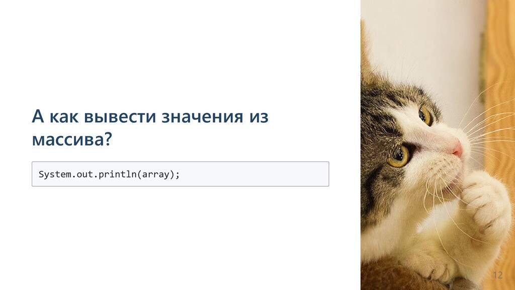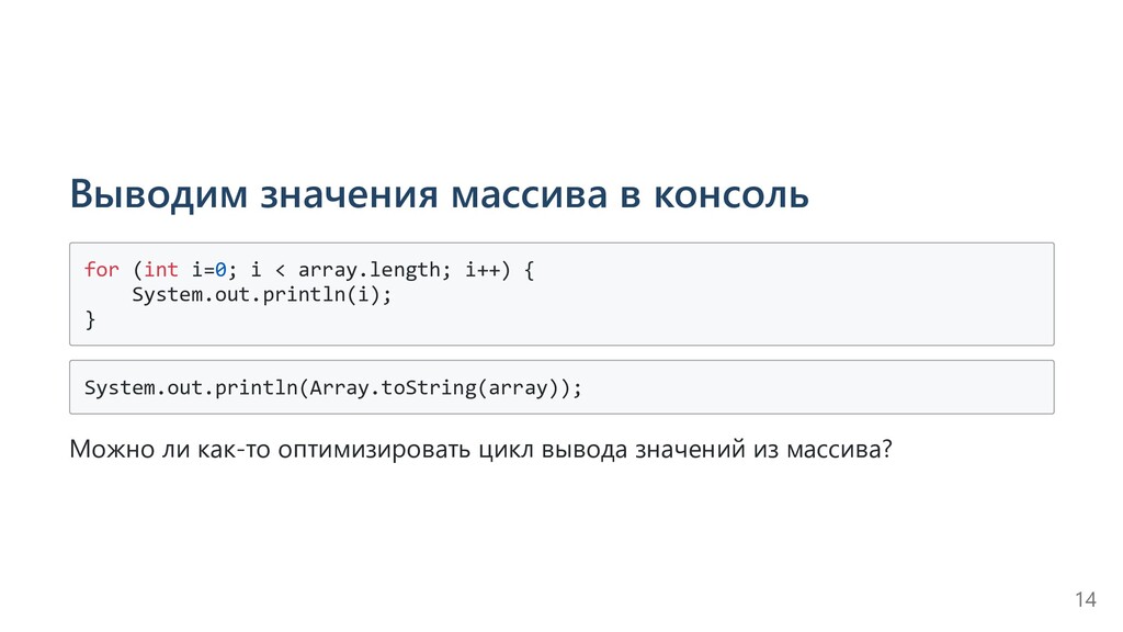 array.length; i++) { System.out.println(i); } System.out.println(Array.toString(array)); Можно ли как-то оптимизировать цикл вывода значений из массива? 14