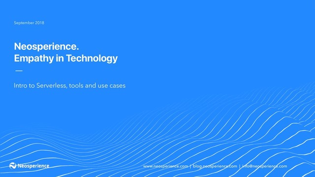EnLabs Yan Cui - @theburningmonk Principal Engineer @ DAZN Gojko Adzic - @gojkoadzic Author of Humans vs Computers, MindMup, and Claudia.js One Day, One Track, One Community 19 October 2018 @ Fondazione Feltrinelli ServerlessDays are a family of events around the world focused on fostering a community around serverless technologies. Each ServerlessDay is unique, organised by locals and not run for profit providing high quality talks at an affordable price. Job Fair is a FREE event open to everyone, where attendants looking for job opportunities are able to meet companies offering the opportunity to enter Serverless ecosystem from the front door. Workshops are a full day opportunity to learn from the best professionals how to start, grow and scale your Serverless skills at an affordable price. milan.serverlessdays.io