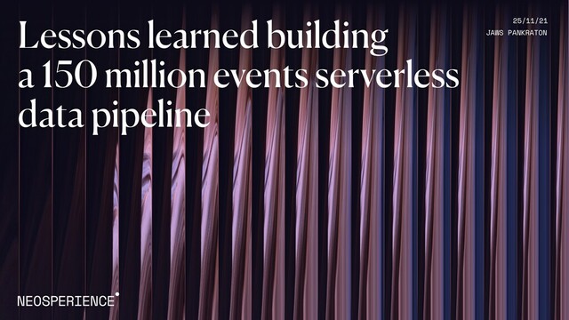 stages. From the browser to customer insights Data processing pipeline A service unable to ramp up as quickly as the events fl ow to the system would result in loss of data User Insight ingestion service collects data from many di ff erent customers leading to unpredictable load Events needs to be stored, then processed and consolidated into an user pro fi le ingest events collect and send to storage store raw events extract, transform, load store baked events process events to build insights store customer profile