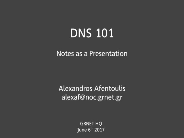 This is an introductory presentation with basic DNS concepts. Took place at GRNET's HQ.