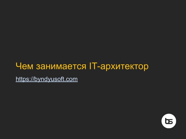в http://byndyusoft.com Преподаю в университете Веду блог http://blog.byndyu.ru В прошлом: • Тренер в ScrumTrek • Вожатый на AgileCamp • IT-директор • Программист