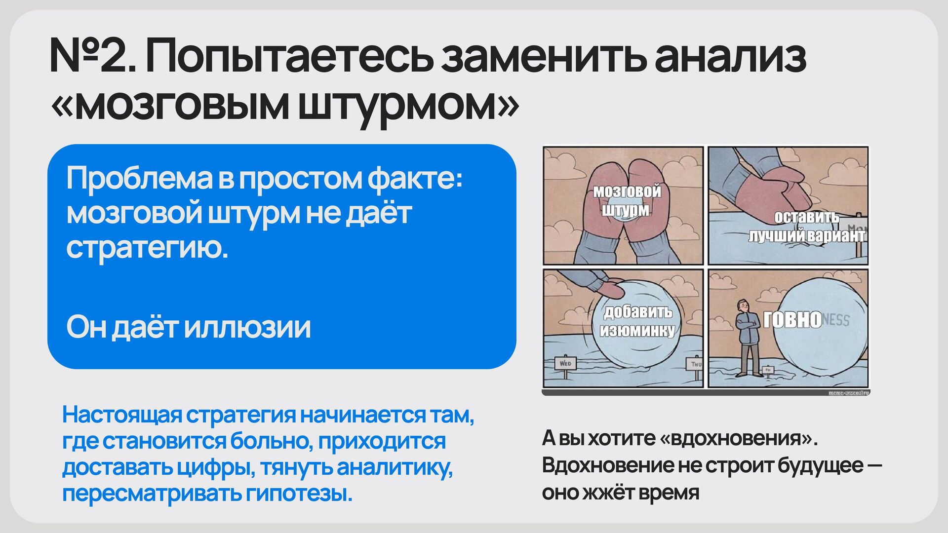 Большинство компаний снова войдут в год без стратегии — зато с полной уверенностью, что стратегия у них есть. Но всё, что они называют стратегией, по-честному даже рядом с ней не лежит.