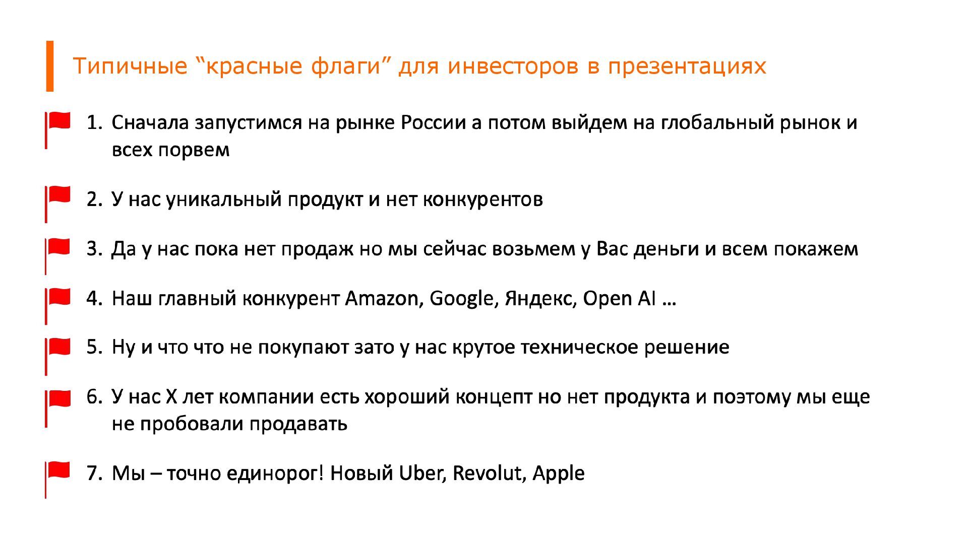 – Критерии инвестора: по каким признакам за первые минуты ясно, что проект нежизнеспособен.