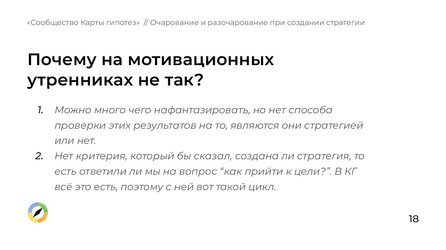 И очень важно: прежде, чем создавать стратегию убедитесь, что вы не создаете мотивационный утренник под это дело, как обычно происходит в 90% случаев.