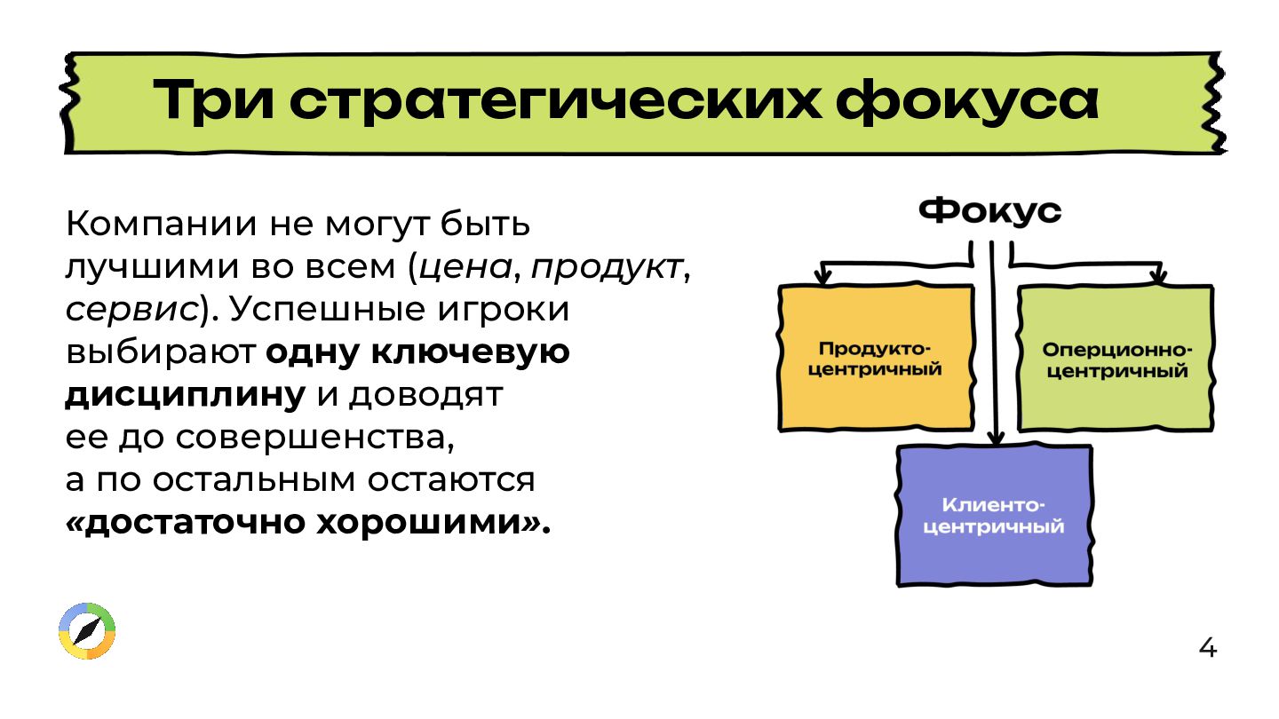 👉 Три стратегических фокуса. Одна главная дисциплина. Остальное — «достаточно хорошо».