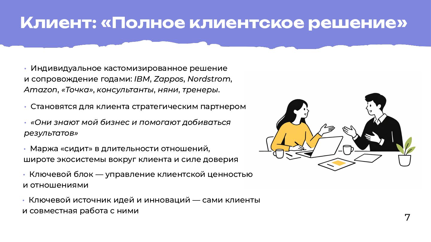 •Клиент — выигрываешь глубокими отношениями («Точка» и тд). Ты — друг, который знает, где у бизнеса болит.
