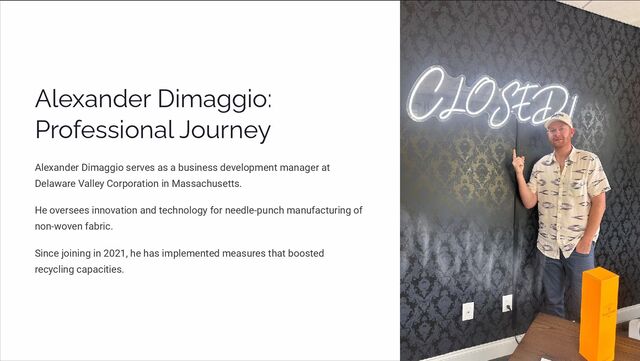 development manager at Delaware Valley Corporation in Massachusetts. He oversees innovation and technology for needle-punch manufacturing of non-woven fabric. Since joining in 2021, he has implemented measures that boosted recycling capacities.