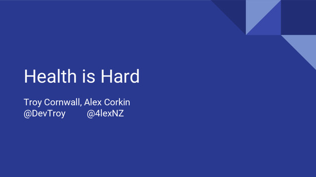 Health is Hard Troy Cornwall, Alex Corkin @DevTroy @4lexNZ