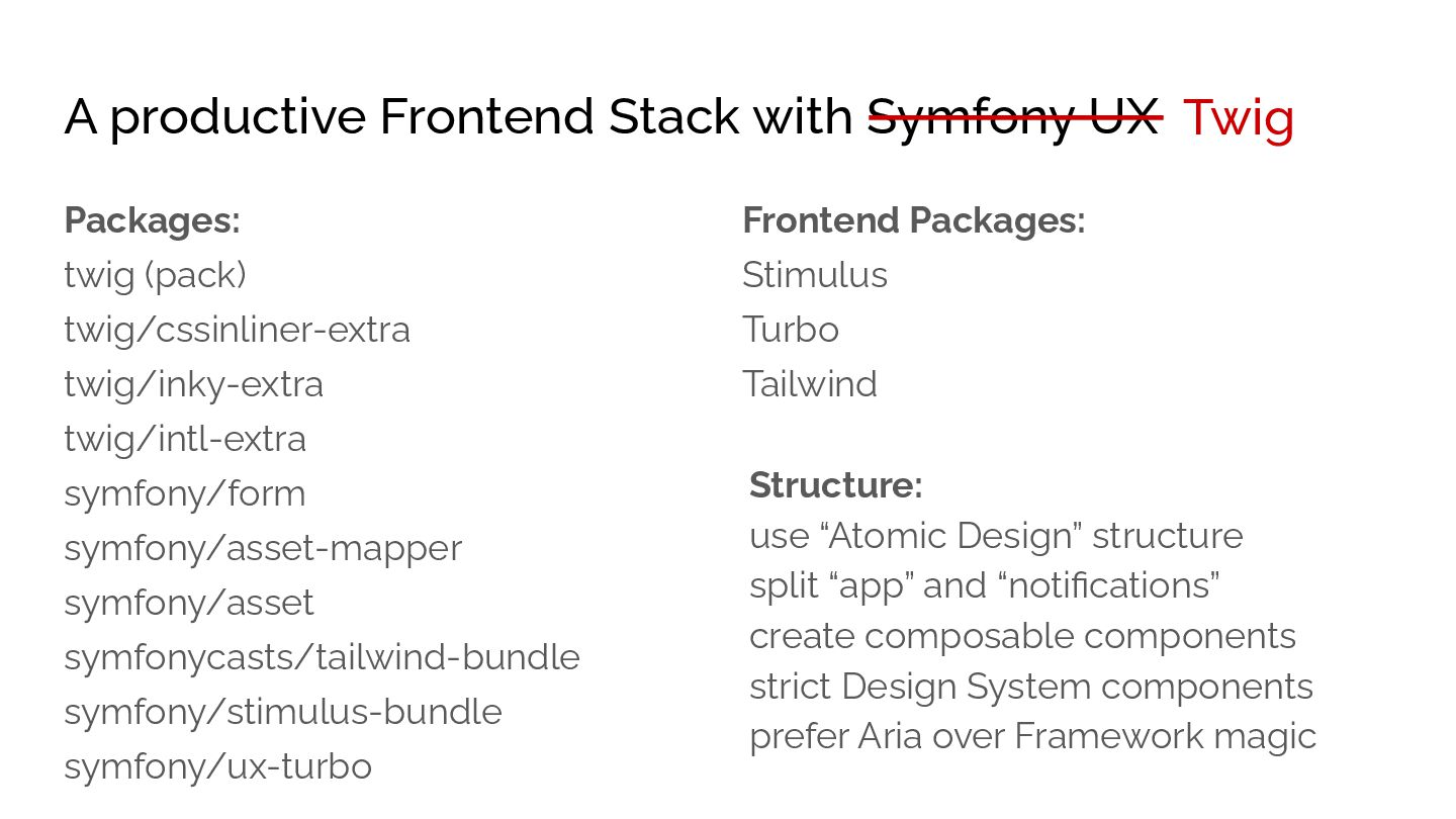 Backend-rendered HTML is back. With the rise of Symfony UX, Twig is becoming more and more important. In this talk, we will look at how you can structure your Twig files without them becoming a mess, and what kind of tricks Twig offers to create reusable components. We'll explore how Symfony Form Theming works and why JavaScript frameworks like Hotwire Turbo with Stimulus and Tailwind make for a productive frontend stack for your next project.