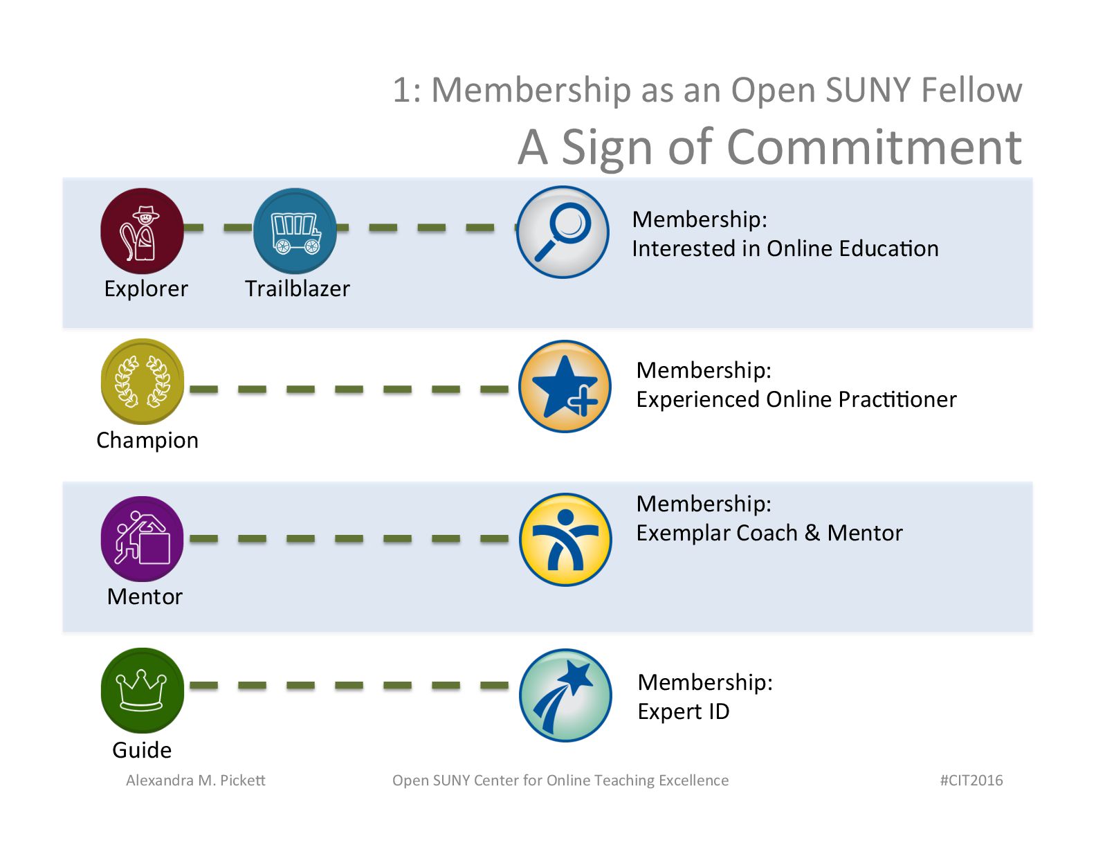 Excellence #CIT2016 1: Membership as an Open SUNY Fellow A Sign of Commitment Explorer Trailblazer Mentor Champion Guide Membership: Interested in Online EducaNon Membership: Exemplar Coach & Mentor Membership: Experienced Online PracNNoner Membership: Expert ID
