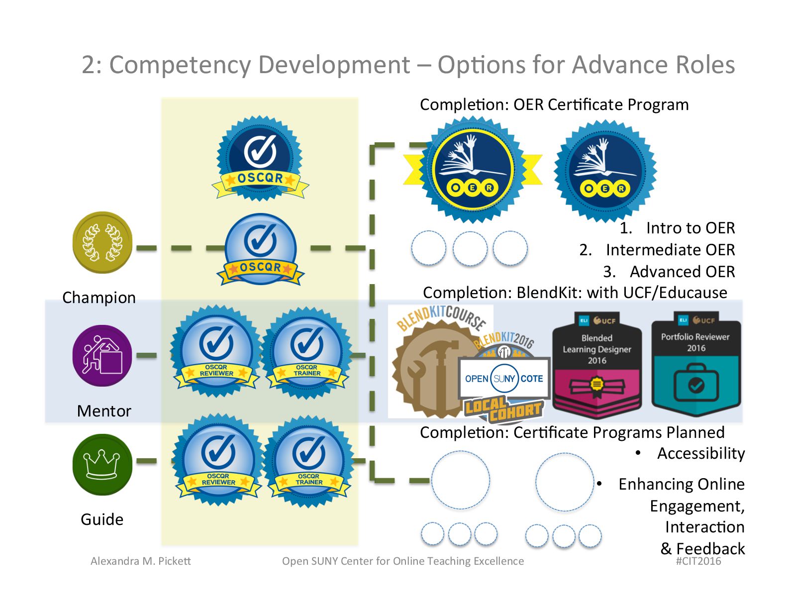 Excellence #CIT2016 CompleNon: OER CerNficate Program 1. Intro to OER 2. Intermediate OER 3. Advanced OER 2: Competency Development – OpNons for Advance Roles Mentor Champion Guide CompleNon: BlendKit: with UCF/Educause CompleNon: CerNficate Programs Planned • Accessibility • Enhancing Online Engagement, InteracNon & Feedback