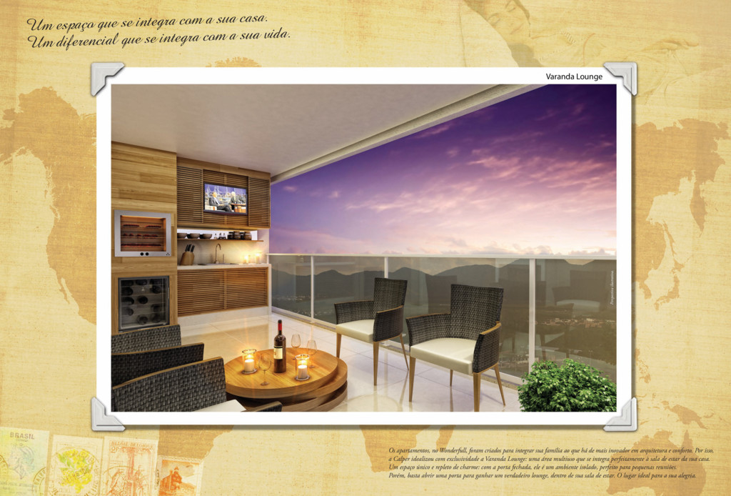 ARQUITETO CASÉ LIMA. 2 - ESPECIFICAÇÕES TÉCNICAS 2.1 - Fundações De acordo com sondagem a ser realizada no local e com o projeto estrutural. 2.2 - Estrutura A estrutura do prédio será de concreto armado em conformidade com o projeto estrutural a ser contratado. 2.3 - Elevador Serão instalados 16 (dezesseis) elevadores (dois em cada bloco) da marca Otis, Thyssen, Atlas Schindler ou similar com as seguintes características: 10 paradas. Capacidade e Velocidade: De acordo com o cálculo da NB 30. Cabina: Revestida de aço inox. Porta da Cabina: De correr, de aço pintado com Dulco. Porta de Acesso: Revestida com pintura Dulco. 2.4 - Instalações Elétricas De acordo com as normas da Light. Fios e Cabos: Alcoa, Induscabos, Pirelli, Ipce, Inbrac ou similar aprovado pelo Inmetro. Quadro Corta-Circuito: Em caixa de ferro, com pintura antiferruginosa ou PVC. Disjuntores: Eletromar, Stec, Pial, Siemens ou similar. Interruptores e Tomadas: Pial, Silentoque, Siemens, Alumbra ou similar. 2.5 - Instalações Telefônicas De acordo com projeto aprovado na Concessionária. Eletrodutos: Rígidos-flexível, de PVC, marca Tigre, Amanco ou similar. 2.6 - Instalações de Segurança e Interfone Previsão para um ponto por apartamento, para futura derivação. 2.7 - Instalação Contra Incêndio Todos os pavimentos estarão providos dos equipamentos regulamentares de combate a incêndio determina- dos pelo CBMERJ. 2.8 - Previsão para Cancela Tubulação seca para futura instalação de cancelas no acesso aos estacionamentos pelo condomínio, con- forme descrito nos custos complementares abaixo. 2.9 - Previsão para Antena Coletiva de TV Tubulação seca para futura instalação de antena em cada apartamento. 2.10 - Instalações Hidráulicas De acordo com as normas da ABNT. Tubulações de Água Fria: De PVC, marca Tigre, Amanco ou similar. Conexões: Marca Tigre, Amanco ou similar. Registros: Marca Fabrimar, Deca, Docol ou similar. Tubulação para Esgoto: Marca Tigre, Amanco ou similar. Caixa de Gordura e Inspeção: De concreto armado com tampas de ferro. 2.11 - Instalações de Gás Tubulação: Tubos galvanizados sem costura, marca Apolo ou similar. Armários com medidores individuais. 2.12 - Instalações de Ar-Condicionado Previsão de tubulação para ar-condicionado tipo split em todos os quartos e salas das unidades privativas com custeio do sistema a ser realizado pelo cliente em rateio específico para o mesmo. 2.13 - Impermeabilização Manta asfáltica da marca Viapol, Denver ou similar ou cimento polimérico nos terraços e dentro dos boxes dos banheiros. 2.14 - Equipamentos de Recalque Serão instaladas bombas de recalque ligando a cisterna às caixas de água superiores. 2.15 - Esquadrias Internas: As portas serão de madeira, para pintura ou verniz, de acordo com as especificações do projeto. Externas da Fachada: As portas e as janelas serão de alumínio com pintura eletrostática, conforme projeto arquitetônico. 2.16 - Vidros Temperado: Na porta de entrada do hall social. Comum ou laminado: Nas demais esquadrias da fachada, conforme projeto executivo. 2.17 - Soleiras e Peitoris Granito ou mármore, conforme detalhe arquitetônico. 2.18 - Elementos de Fachada Pintura texturizada, conforme projeto arquitetônico. Alumínio, com pintura eletrostática, conforme projeto arquitetônico. Vidros transparentes laminados. 3 - ESPECIFICAÇÕES DE ACABAMENTO DAS UNIDADES AUTÔNOMAS E PARTES COMUNS 3.1 - Partes Comuns 3.1.1 - Térreo 3.1.1.1- Portaria e Hall Social do Térreo Piso: Porcelanato Biancogrês, Eliane, Cecrisa ou similar. Rodapés: Porcelanato Biancogrês, Eliane, Cecrisa ou similar. Paredes: Textura acrílica com detalhes, conforme projeto arquitetônico. Teto: Rebaixado de gesso com pintura PVA. 3.1.1.2 - Vestiário Masculino, Feminino e W.C. para Deficientes Piso: Cerâmica 40 cm X 40 cm Biancogrês, Eliane, Cecrisa ou similar. Paredes: Azulejo 15 cm X 15 cm Biancogrês, Eliane, Cecrisa ou similar. Teto: Rebaixado de gesso, com pintura PVA. Bancada: Mármore ou granito. Divisórias: Mármore ou granito. 3.1.1.3 - Rampas Piso: Cimentado. Paredes: Textura acrílica branca. 3.1.1.4 - Acesso e Circulação de Pedestres e Veículos Piso: Intertravado de acordo com projeto arquitetônico ou cimentado liso. 3.1.1.5 - Churrasqueira Piso: Cerâmica 40 cm X 40 cm Biancogrês, Eliane, Cecrisa ou similar. Paredes: Textura acrílica na cor branca. Teto: Pergolado de madeira. 3.1.1.6 - Playground Piso: Cerâmica 40 x 40 Biangogrês, Eliane, Cecrisa ou similar. Paredes: Textura acrílica na cor branca. Teto: Pergolado de madeira. 3.1.1.7 - Piscina Piso e Paredes: Azulejo 15 cm X 15 cm Biancogrês, Eliane, Cecrisa ou similar. 3.1.1.8 - Deck da Piscina Piso: Cerâmica 40 cm X 40 cm Biancogrês, Eliane, Cecrisa ou similar. 3.1.1.9 - Bar da Piscina Piso: Cerâmica 40 cm X 40 cm Biancogrês, Eliane, Cecrisa ou similar. Paredes: Textura acrílica na cor branca. Teto: Pergolado de madeira. 3.1.1.10 - Academia/Pilates/Spinning Piso: Cerâmica 40 cm X 40 cm Biancogrês, Eliane, Cecrisa ou similar. Paredes: Pintura PVA branca ou conforme o projeto arquitetônico. Teto: Rebaixamento de gesso, com pintura PVA na cor branca. 3.1.1.11 - Sala de Repouso/Sala de Banho Piso: Laminado, emborrachado ou similar. Parede: Pintura PVA branca ou conforme o projeto arquitetônico. Teto: Rebaixamento de gesso, com pintura PVA na cor branca. 3.1.1.12 - Sauna a Vapor Piso: Cerâmica 40 cm X 40 cm Biancogrês, Eliane, Cecrisa ou similar. Paredes, bancos e teto: Azulejo 15 cm X 15 cm Biancogrês, Eliane, Cecrisa ou similar. 3.1.1.13 - Sauna Seca Piso: Cerâmica 40 cm X 40 cm Biancogrês, Eliane, Cecrisa ou similar. Paredes e Teto: Lambri de madeira, de cedrinho ou similar de 10 cm de largura. 3.1.1.14 - Salão de Festas Piso: Porcelanato Biancogrês, Eliane, Cecrisa ou similar. Paredes: Pintura PVA branca ou conforme o projeto arquitetônico. Teto: Rebaixamento de gesso com pintura PVA na cor branca. 3.1.1.15 - Brin