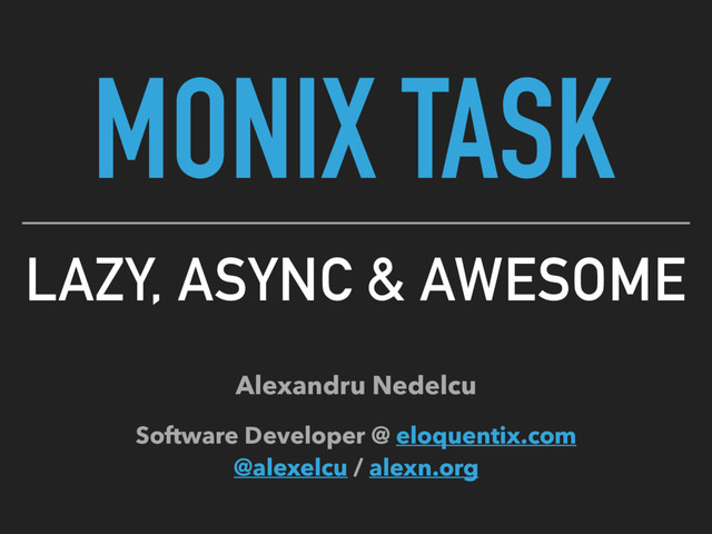 The Monix Task is in essence about dealing with asynchronous computations and non-determinism, being inspired by the Scalaz Task and designed from the ground up for performance and to be compatible with Scala.js/Javascript runtimes and with the Cats library. It also makes use of Scala’s Future to represent results, the two being complementary.