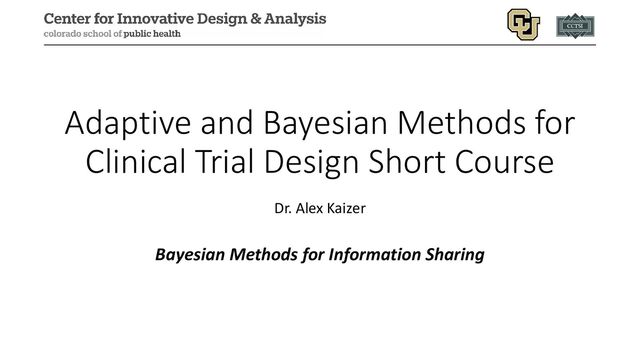 The Bayesian information sharing module for the "Adaptive and Bayesian Methods for Clinical Trial Design Short Course" by Dr. Alex Kaizer. We review motivation and highlight some statistical methods to facilitate incorporating historic, external, or supplemental data sources into a clinical trial.