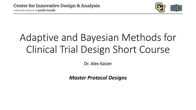 adaptive trial designs: a review of design opportunities in translational research." Journal of Clinical and Translational Science (2023): 1-35. • Woodcock, Janet, and Lisa M. LaVange. "Master protocols to study multiple therapies, multiple diseases, or both." New England Journal of Medicine 377.1 (2017): 62-70. • Renfro, L. A., & Sargent, D. J. (2017). Statistical controversies in clinical research: basket trials, umbrella trials, and other master protocols: a review and examples. Annals of Oncology, 28(1), 34-43. • West, Howard Jack. "Novel precision medicine trial designs: umbrellas and baskets." JAMA oncology 3.3 (2017): 423-423. • Kim, Edward S., et al. "The BATTLE trial: personalizing therapy for lung cancer." Cancer discovery 1.1 (2011): 44-53. • Heinrich, Michael C., et al. "Phase II, open-label study evaluating the activity of imatinib in treating life-threatening malignancies known to be associated with imatinib-sensitive tyrosine kinases." Clinical Cancer Research 14.9 (2008): 2717-2725. • Dodd, Lori E., et al. "Design of a randomized controlled trial for Ebola virus disease medical countermeasures: PREVAIL II, the Ebola MCM Study." The Journal of infectious diseases 213.12 (2016): 1906-1913. • PREVAIL II writing group, and Multi-National PREVAIL II Study Team. "A randomized, controlled trial of ZMapp for Ebola virus infection." The New England journal of medicine 375.15 (2016): 1448. • Kaizer, Alexander M., Brian P. Hobbs, and Joseph S. Koopmeiners. "A multi-source adaptive platform design for testing sequential combinatorial therapeutic strategies." Biometrics 74.3 (2018): 1082-1094. • Hobbs, Brian P., Bradley P. Carlin, and Daniel J. Sargent. "Adaptive adjustment of the randomization ratio using historical control data." Clinical Trials 10.3 (2013): 430-440.