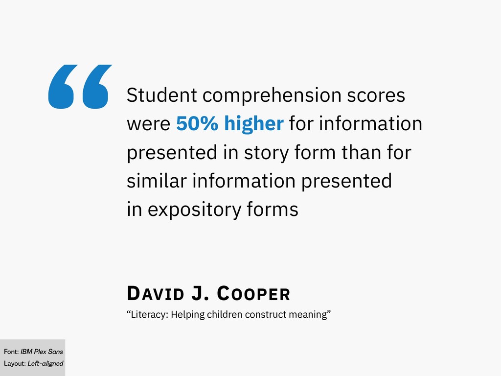 scores were 50% higher for information presented in story form than for similar information presented in expository forms Font: IBM Plex Serif Layout: Classical