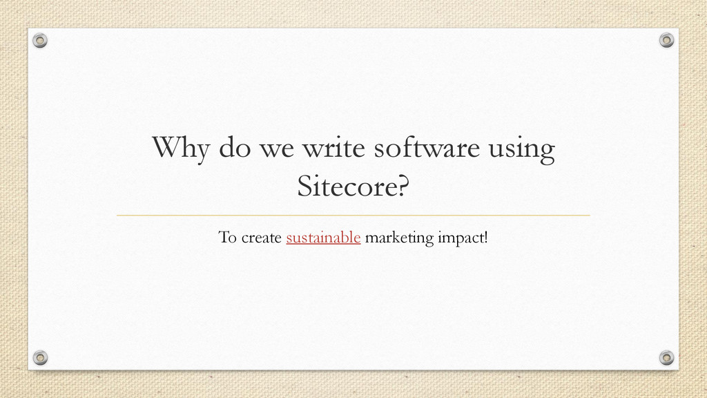 engine is heavy and puts on all sorts of dependencies • Federated Experience Manager does support 80% of the Marketing features • Item Web API for Content (who uses inline editing anyway ;-)) • Generally the industry moves to Browser based & JavaScript • One-page websites • SDL & Adobe dropped their Render Engine support • Remember Google Analytics & Google Webmaster tools? All JavaScript… • Enough alternatives which can run on cheap hosting (NancyFx, ASPNETv5)