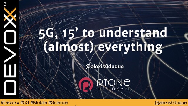 During this presentation, I will try to answer these questions. I will popularize and make easy to understand what are 3GPP, mmWave, NFV, 5G-New Radio, Massive IoT, LPWAN, or beamforming.