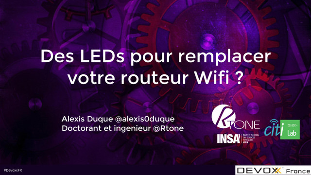 Slides du quickie "Des LEDs pour remplacer votre routeur Wifi ?" sur Visible Light Communication à Devoxx France 2016.