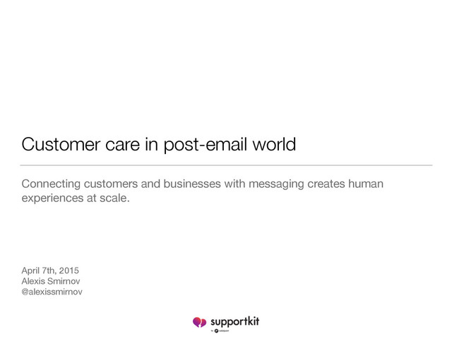 This 5-minute presentation is about connecting customers and businesses with SupportKit. It was given at MtlNewTech on Aptil 7th 2015