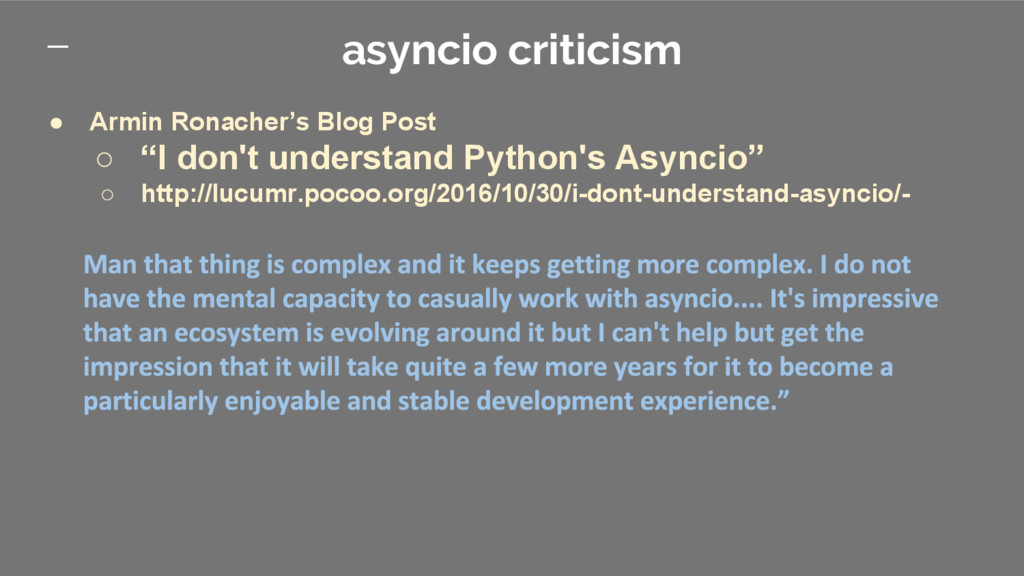 Beyond Python's Comfort Zone: Asynchronous Python in 2016-2017