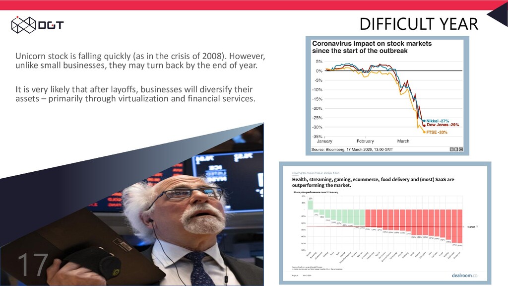 crisis of 2008). However, unlike small businesses, they may turn back by the end of year. It is very likely that after layoffs, businesses will diversify their assets – primarily through virtualization and financial services.