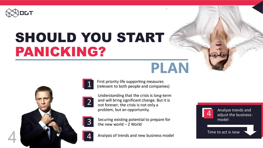 measures (relevant to both people and companies) 2 Understanding that the crisis is long-term and will bring significant change. But it is not forever; the crisis is not only a problem, but an opportunity. 3 Securing existing potential to prepare for the new world – Z World 4 Analyze trends and adjust the business- model Time to act is now 4 Analysis of trends and new business model