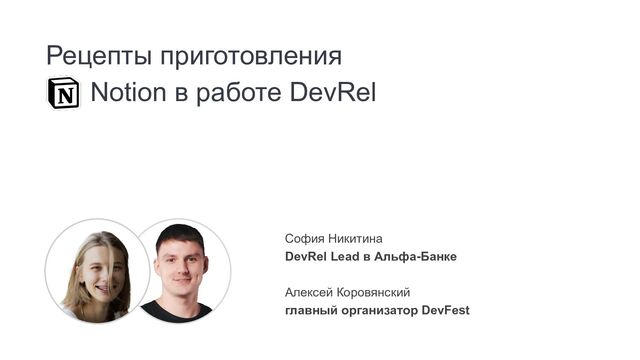 София Никитина и Алексей Коровянский рассказали, как организована работа с Notion в команде технического бренда работодателя Альфа-Банка и в работе орг. команды DevFest.