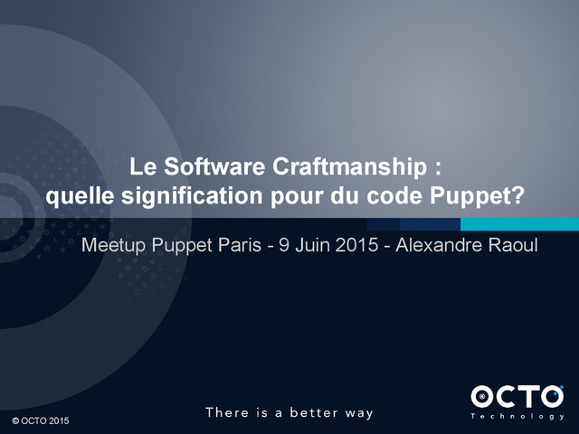 si … “je comprends comment ça marche” Clean Code Exemple : on fait du puppet avec “package”, “file” etc pas des oneliner shell de 400 signes dans un exec Exemple : on n’abuse pas de l’héritage, des ancres partout ou des collecteurs pour modifier des ressources
