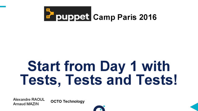 Embrace TDD Craft your (dev) tools Start tests on day 1, feed them on a daily basis Take advantage of Puppet rich testing ecosystem WIN WIN WIN WIN WIN WIN