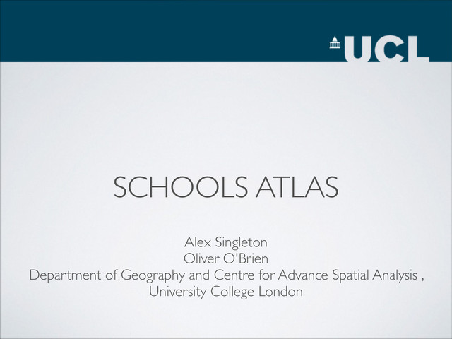 SCHOOLS ATLAS Alex Singleton Oliver O'Brien Department of Geography and