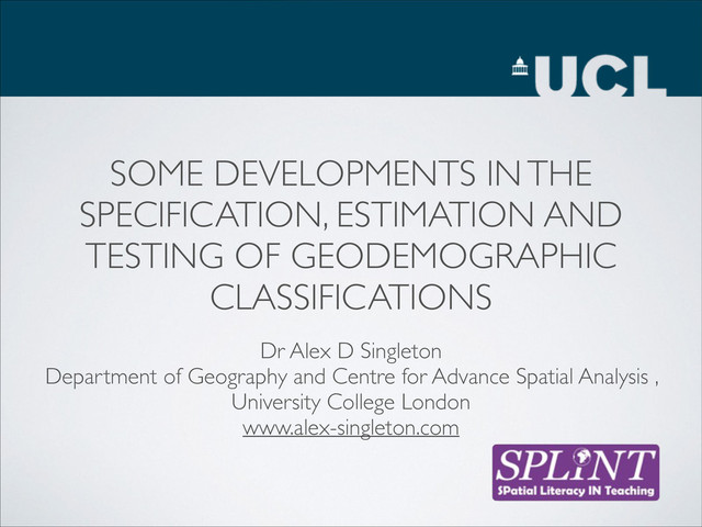 Geodemographics (Feng & Flowerdew, 1998; See & Openshaw, 2001) • Description V Modelling (Harris et al, 2007) • Bespoke Classifications (Longley and Singleton, 2009a) • Public Consultation (Longley and Singleton, 2009b) • Utility of public consultation data (Singleton, 2008)