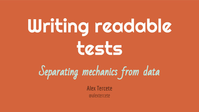 Writing readable tests Separating mechanics from data Alex Tercete @alextercete
