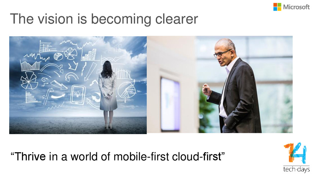 (under 9”) • No longer main target •Big investments in Azure services • Performance, scale, capabilities •Great range of devices from Nokia •Big investments in .NET •Embrace Open Source • Roslyn compilers are now open source • .NET Foundation The move towards a different company