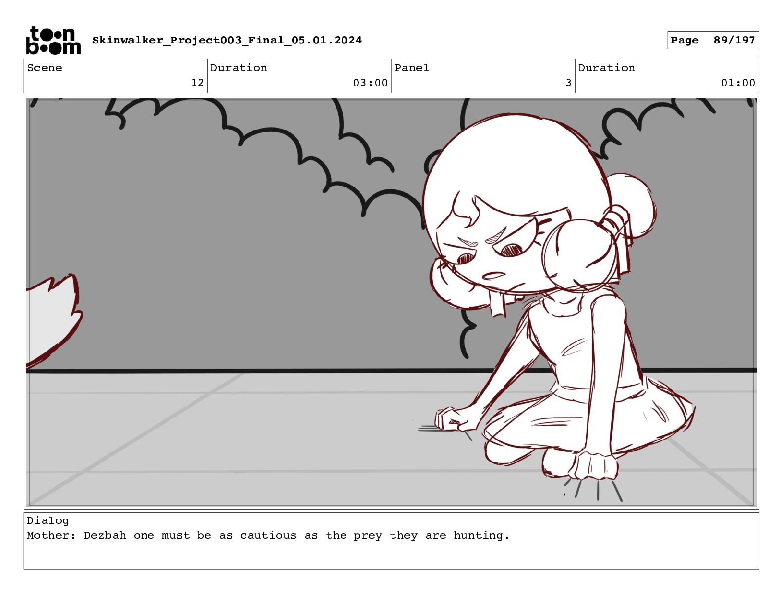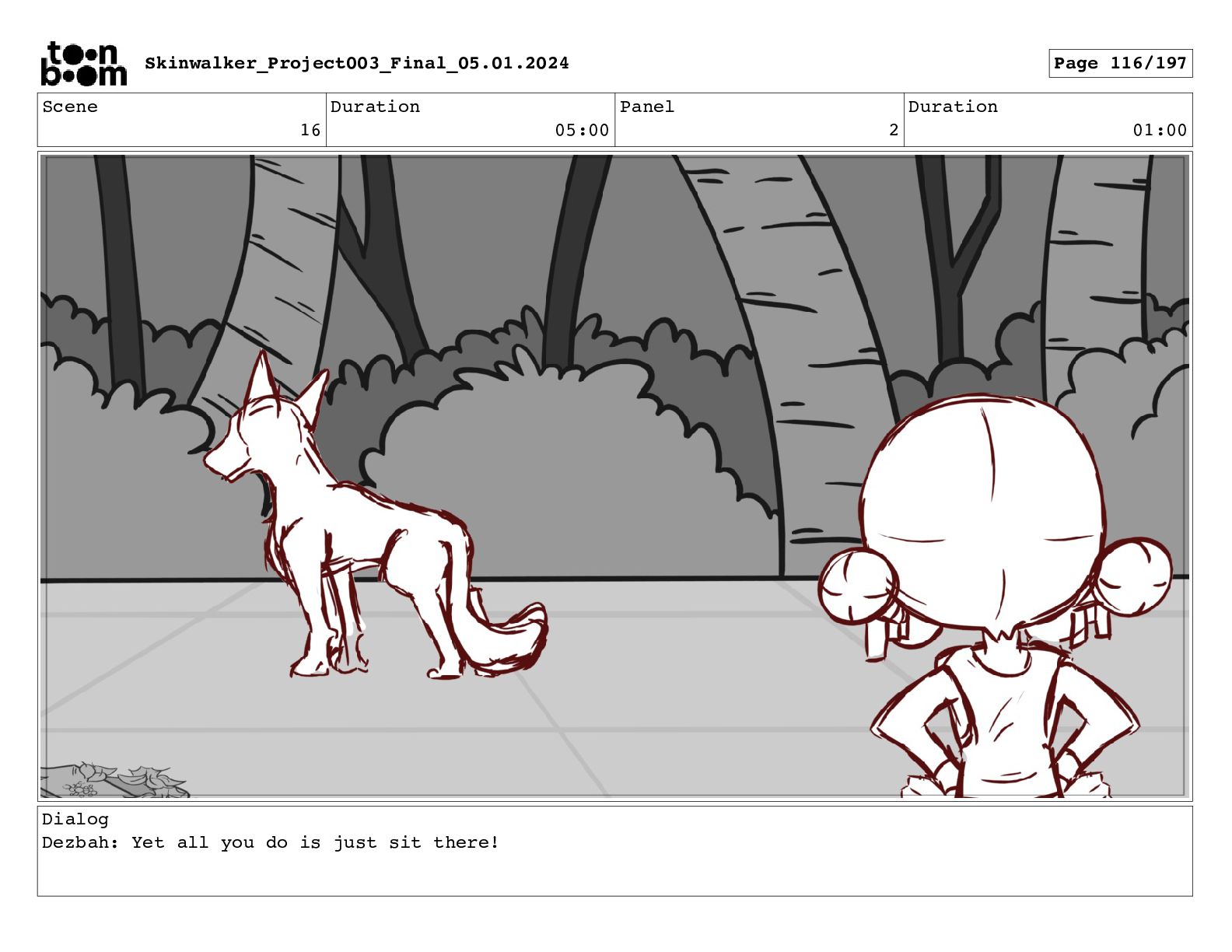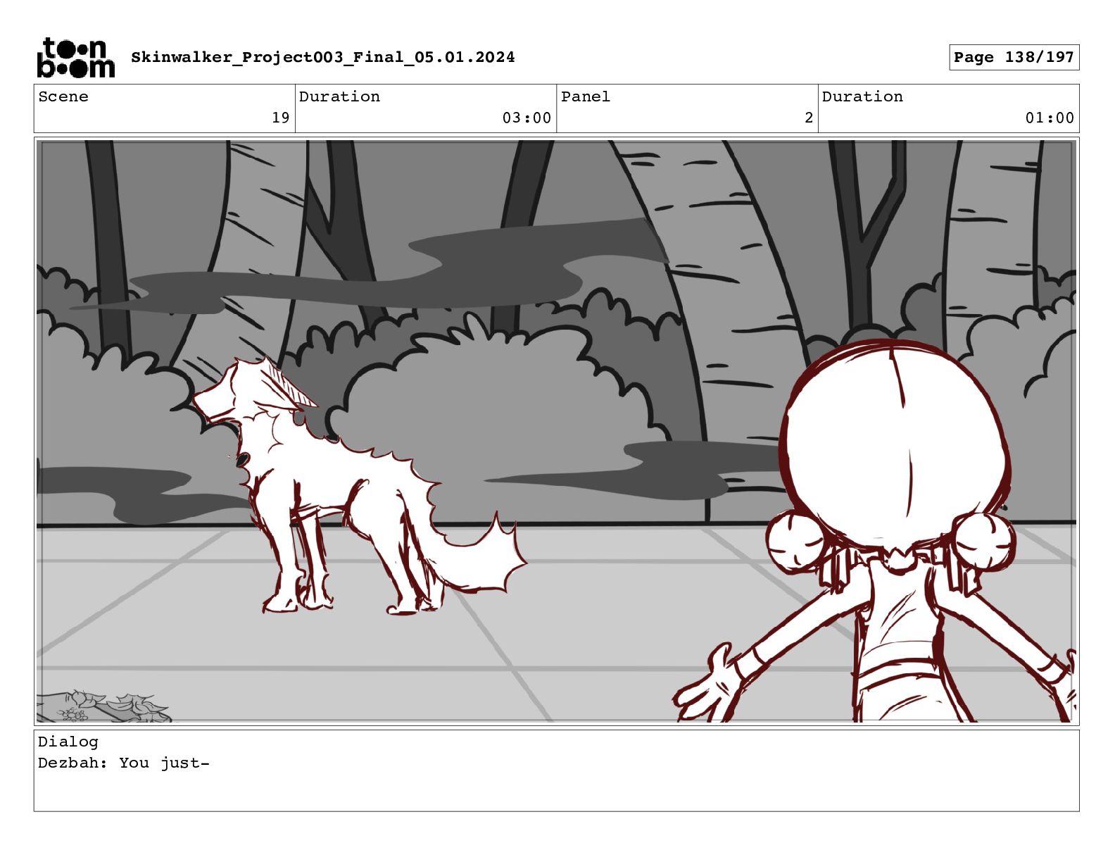 Alex Leiker Final for Storyboarding Class Following the given story + the given characters from the professor (Not my script or character designs, rest is all mine)