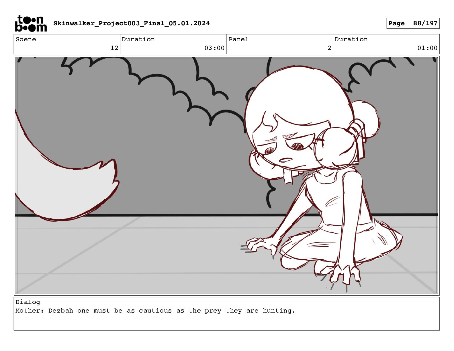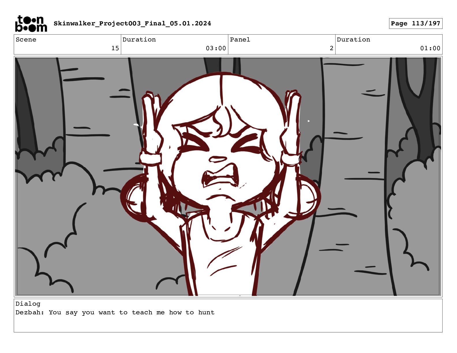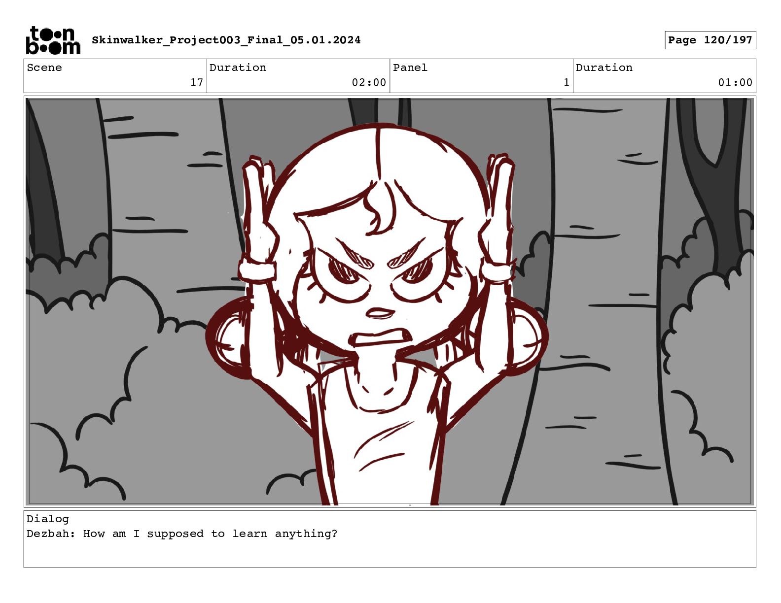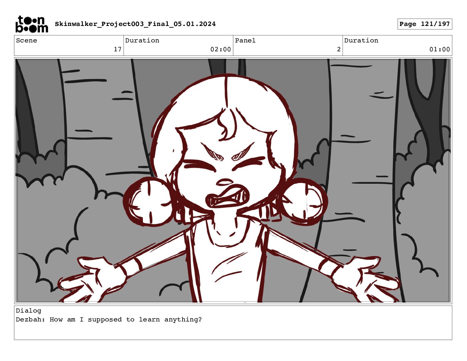 Alex Leiker Final for Storyboarding Class Following the given story + the given characters from the professor (Not my script or character designs, rest is all mine)