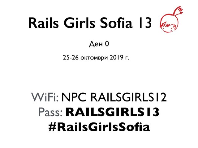 WiFi: NPC RAILSGIRLS12 Pass: RAILSGIRLS13 #RailsGirlsSofia